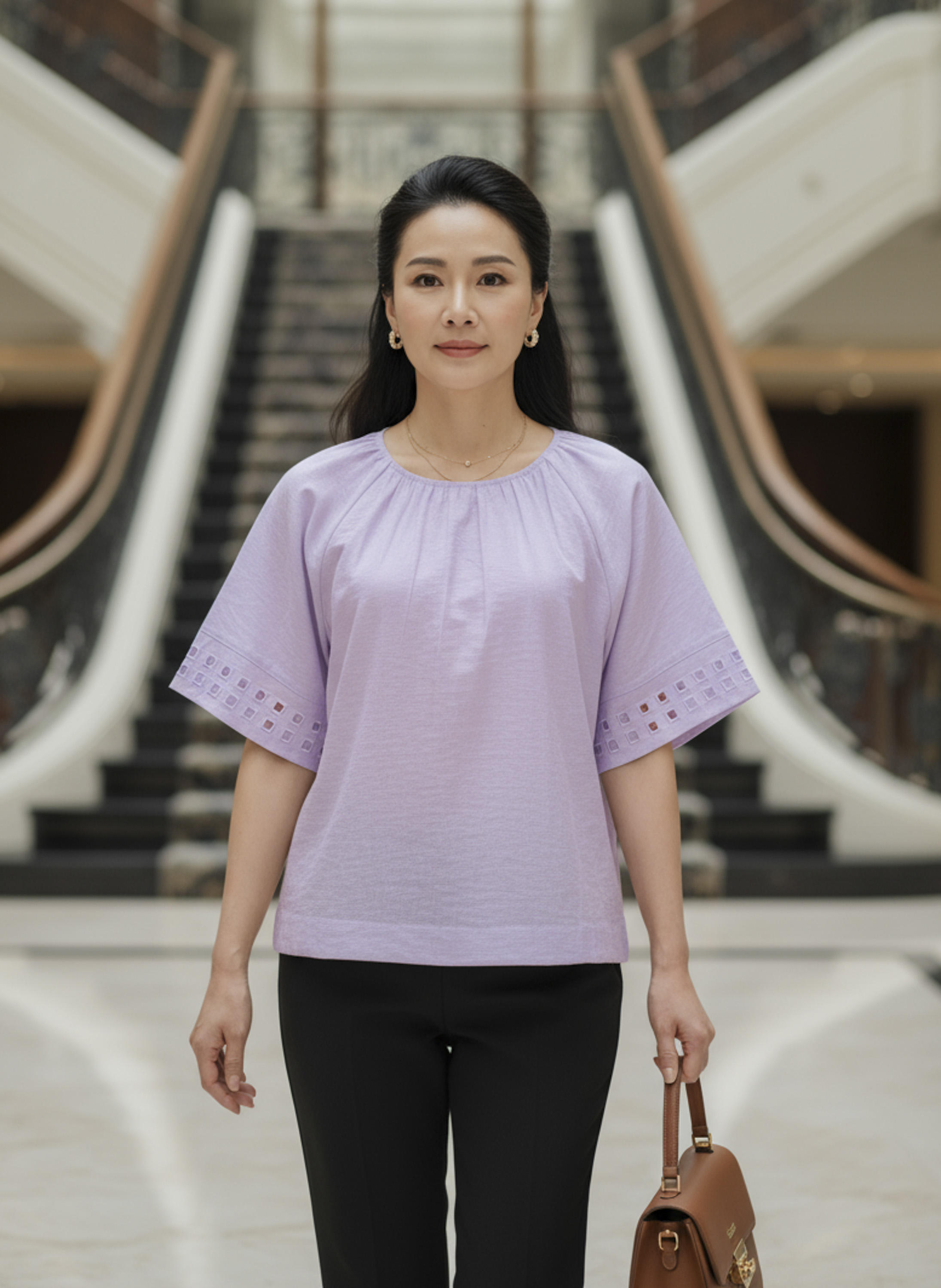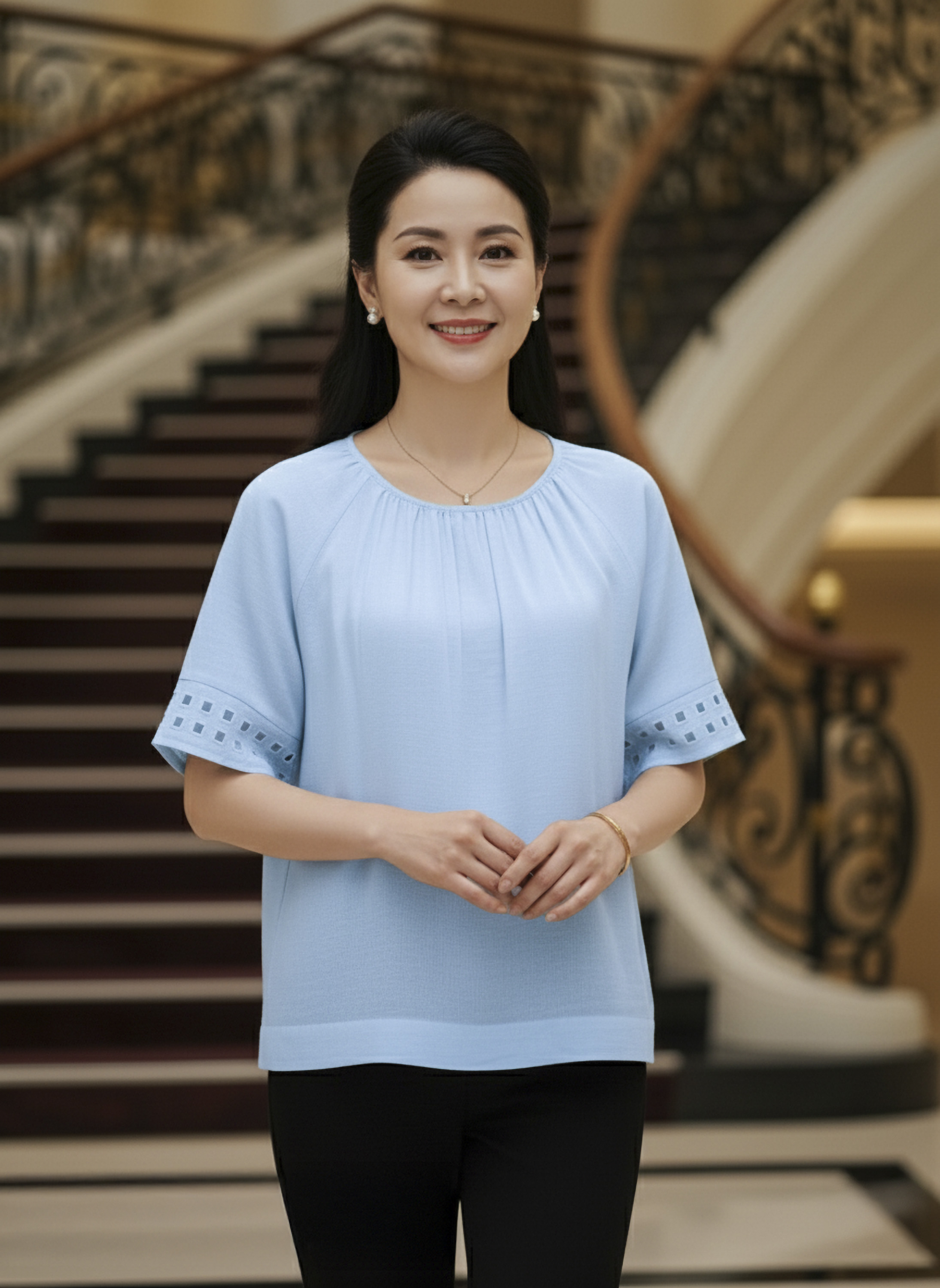 M COLLECTION | Áo Kiểu Nữ Trung Niên Tặng Mẹ, Bà Chất Vải Lụa Hàn Cổ Tròn Bo Chun Tay Ngắn A11631