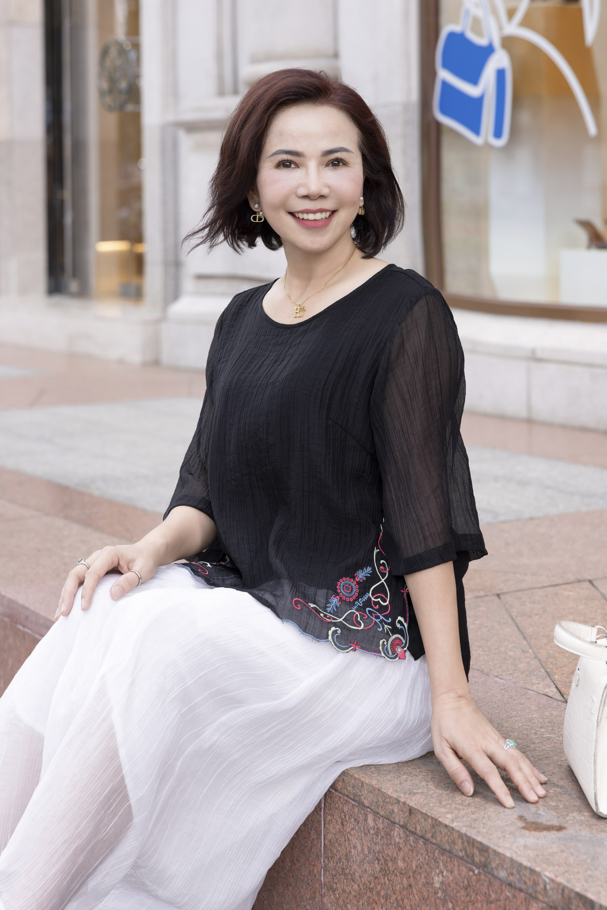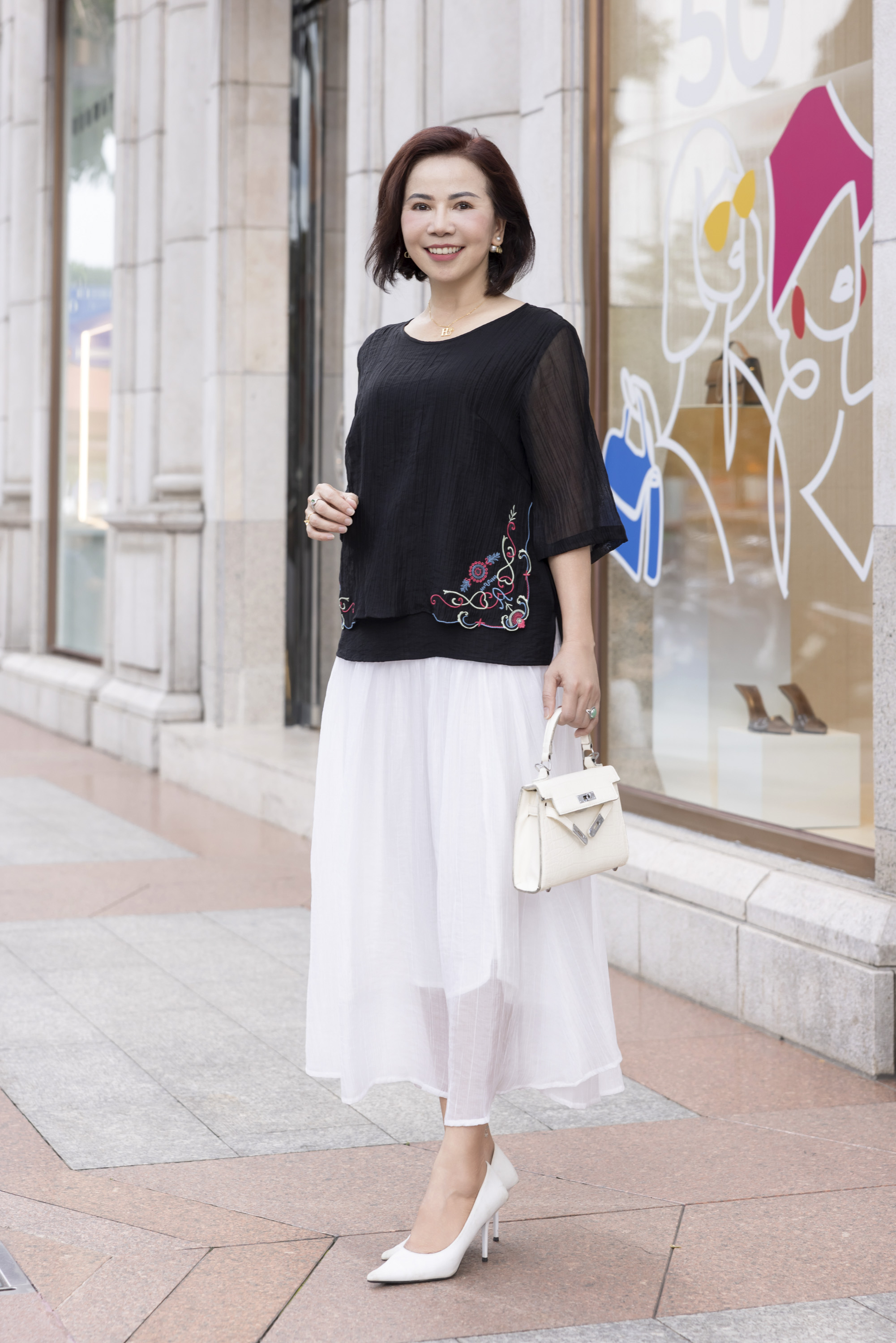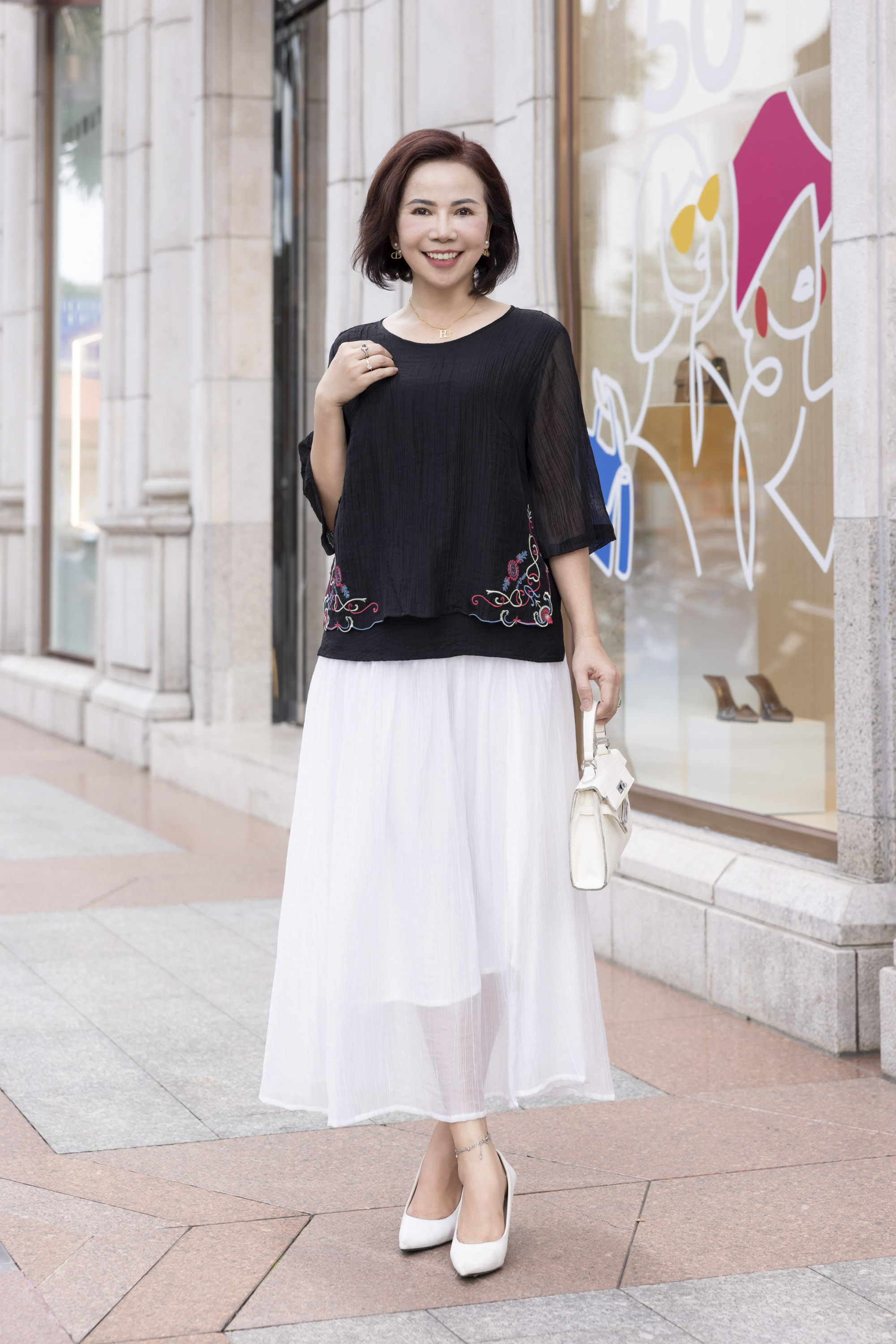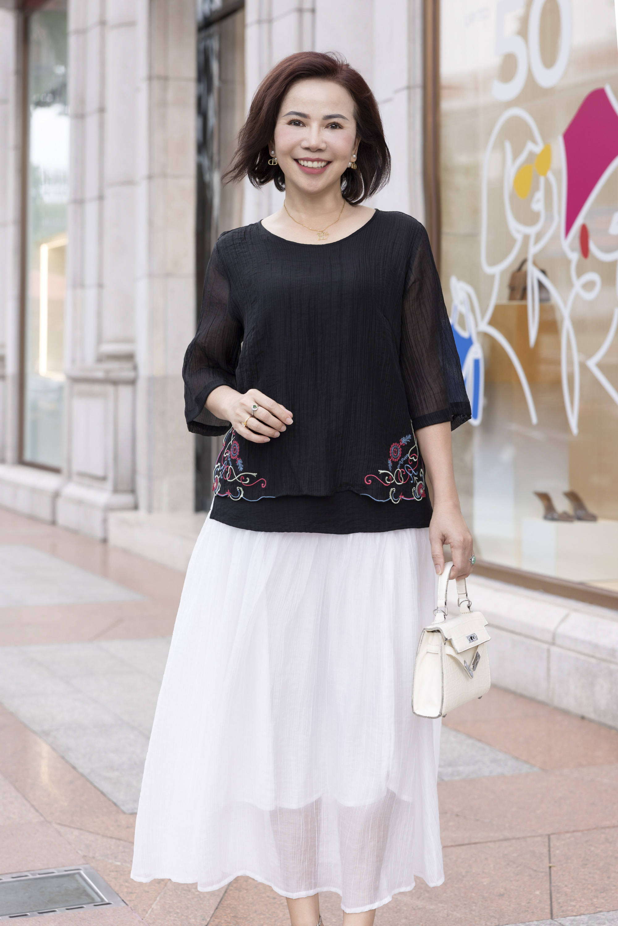 M COLLECTION | Áo Kiểu Nữ Trung Niên Tặng Mẹ Tơ Dập Ly Có Lót Thêu Hoa Tay Lỡ Xếp Tầng Xẻ Tà A12886LW01