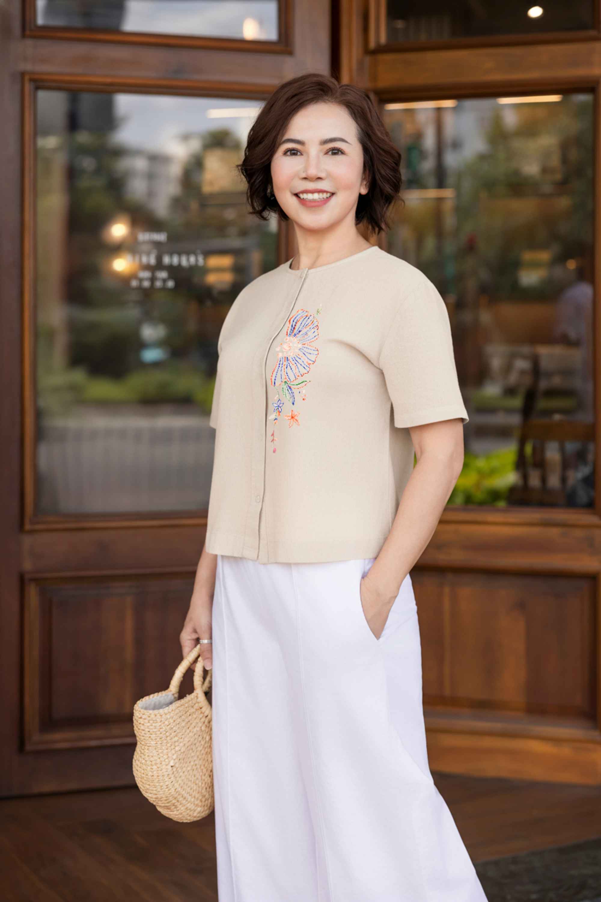 Áo Trung Niên Linen Thêu Tay Ngắn Mặc Hàng Ngày - A12472LW01