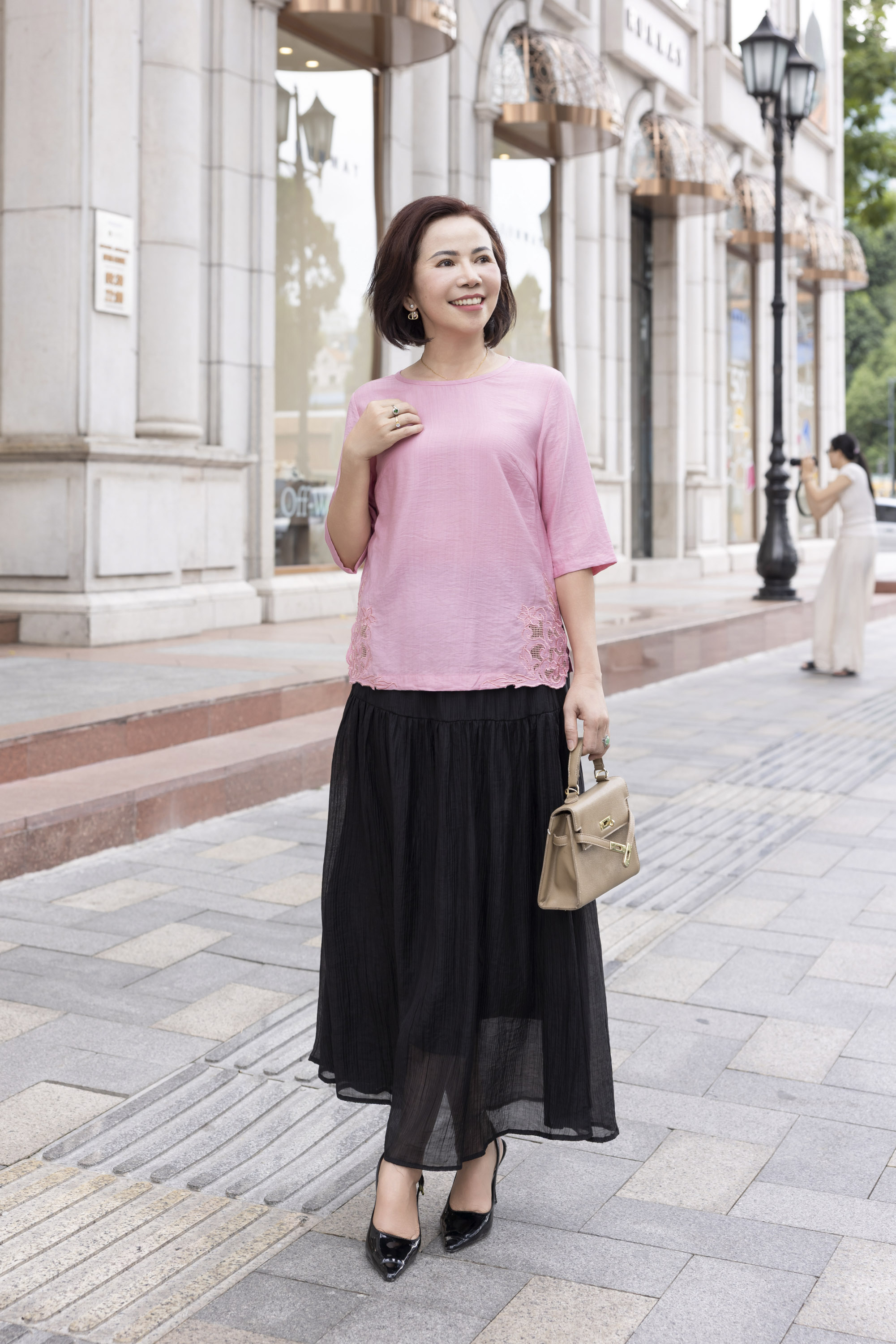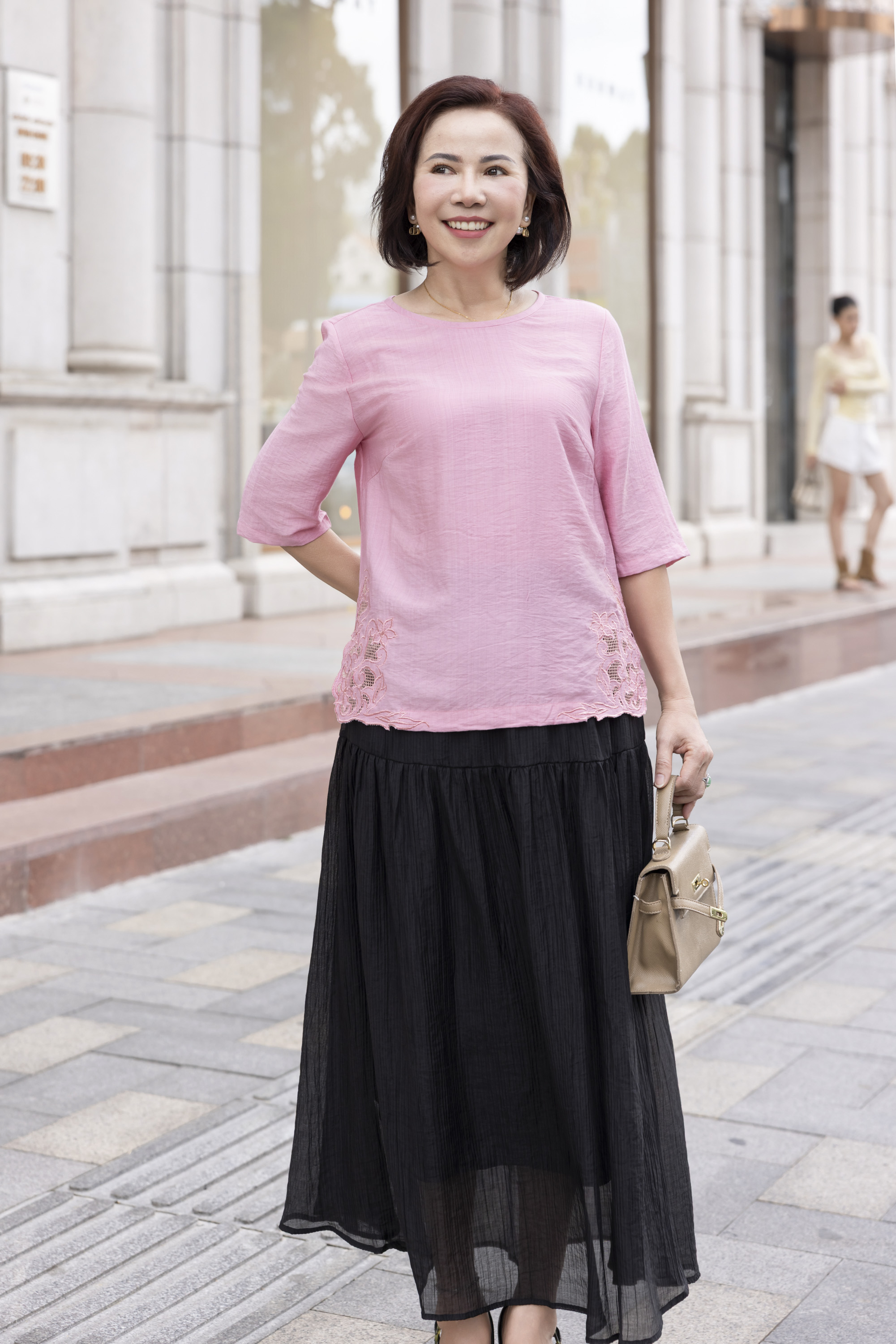 M COLLECTION | Áo Trung Niên Tặng Mẹ Mặc Hằng Ngày Ô Đan Dây Tơ Xốp A11471LW01