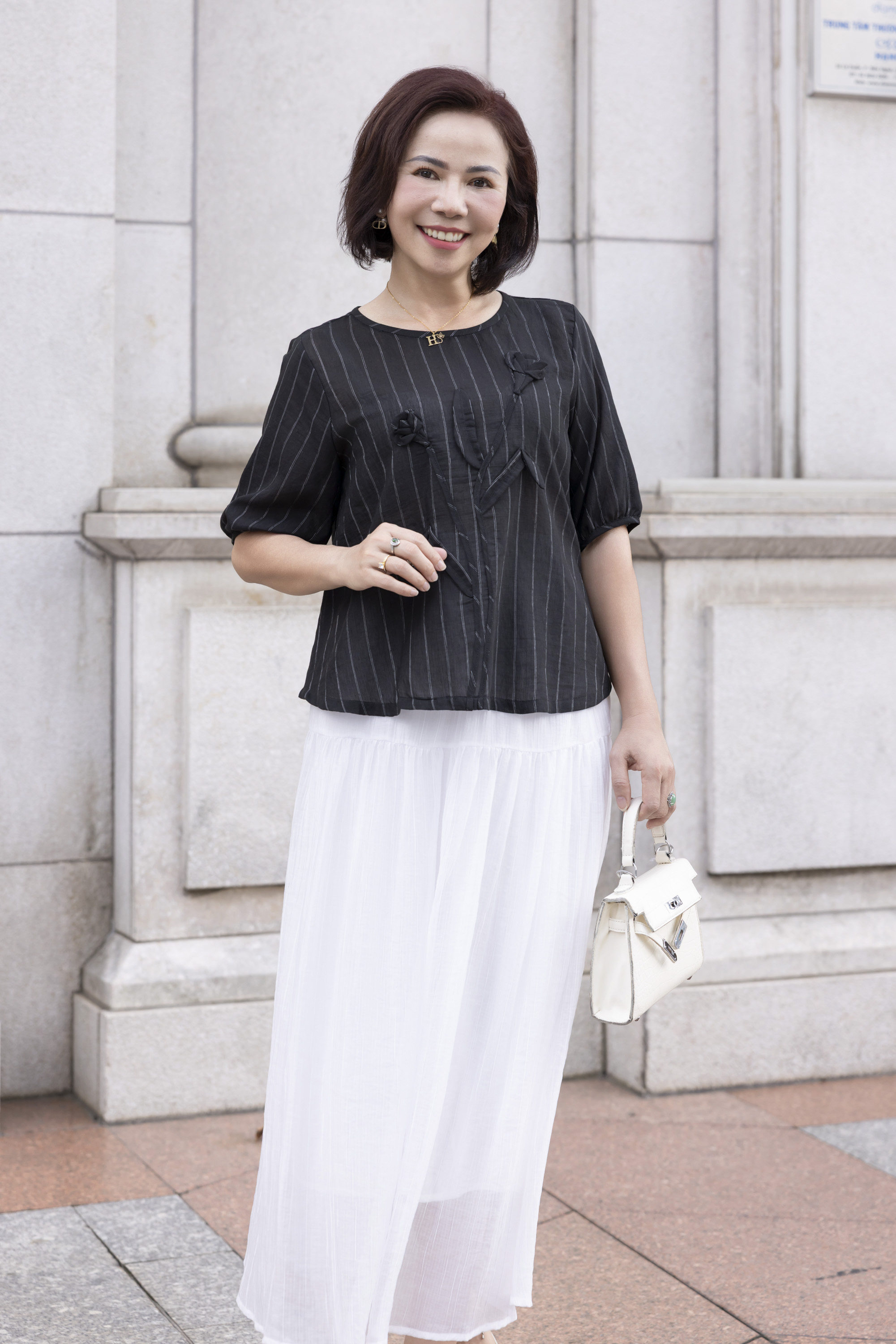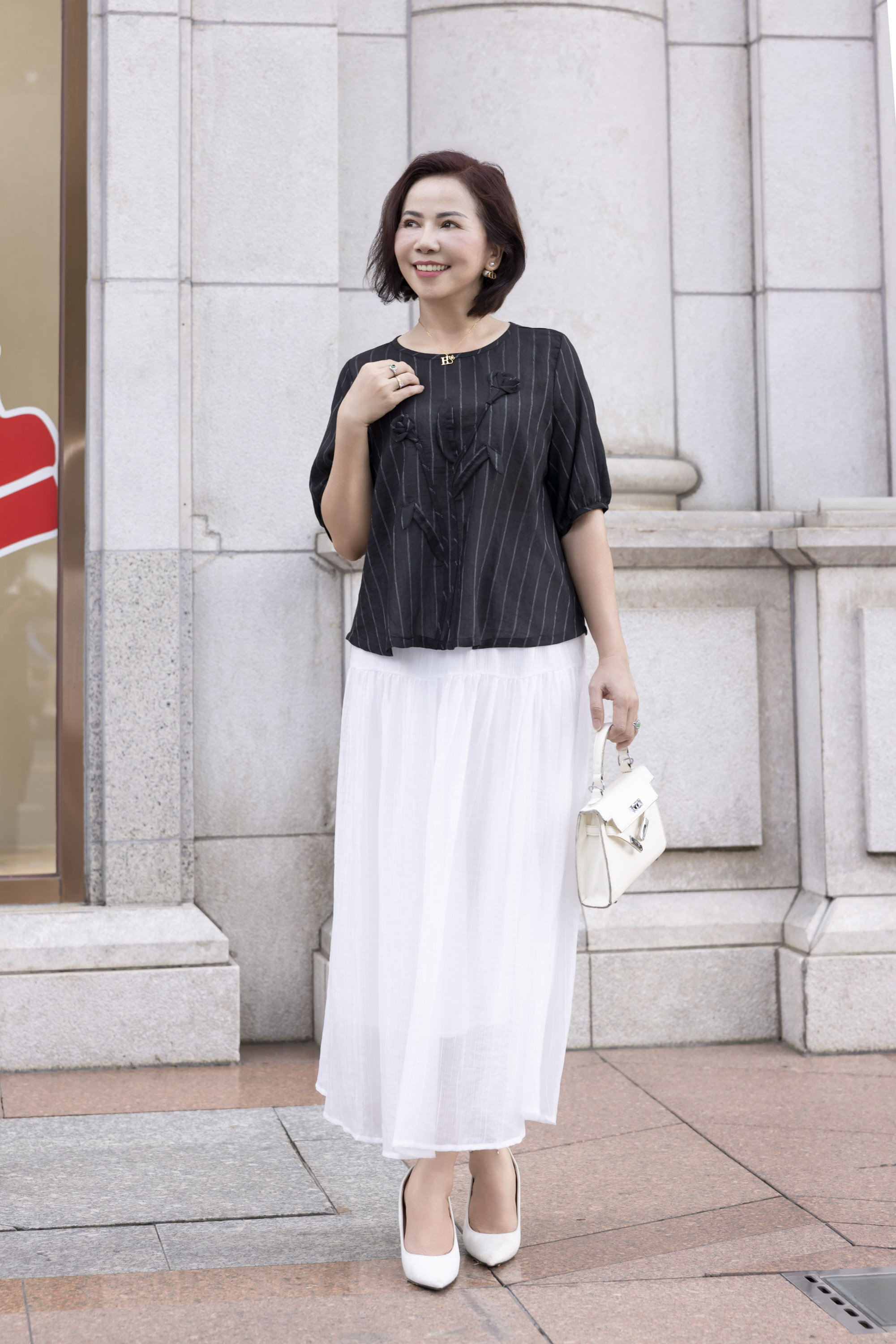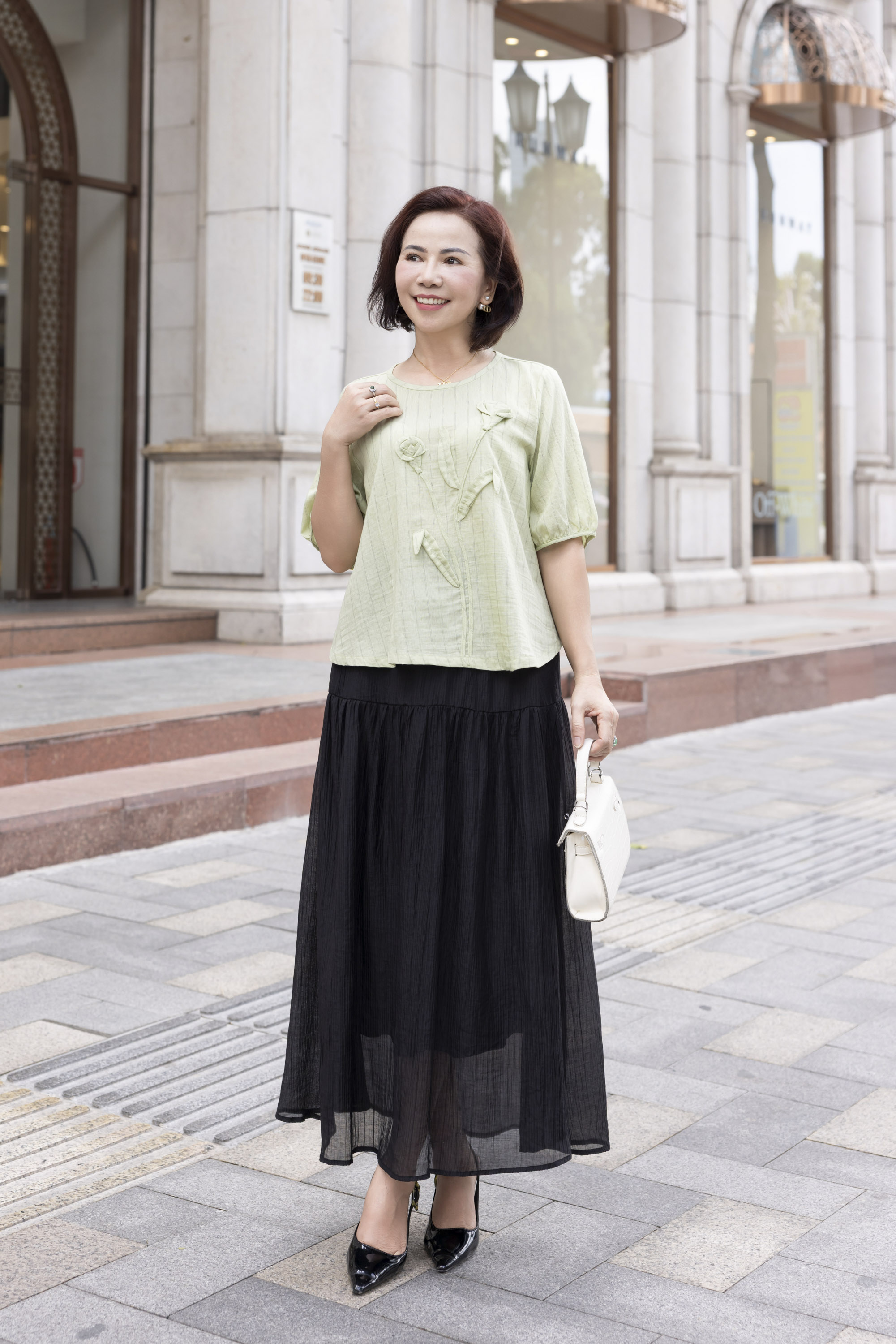 M COLLECTION | Áo Kiểu Nữ Trung Niên Tặng Mẹ Phom Suông Cổ Tròn Chất Vải Linen Thêu Họa Tiết A10943LW01