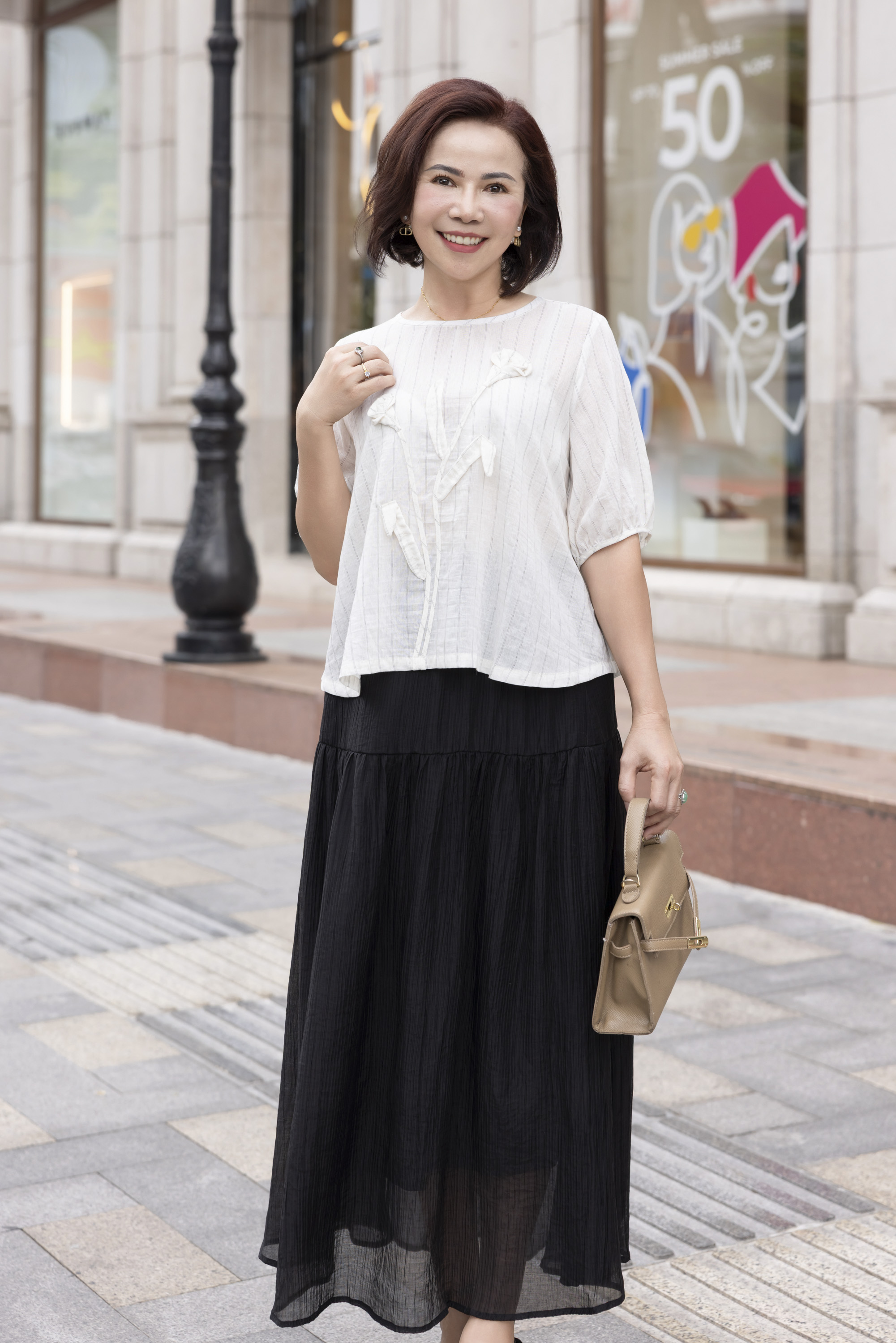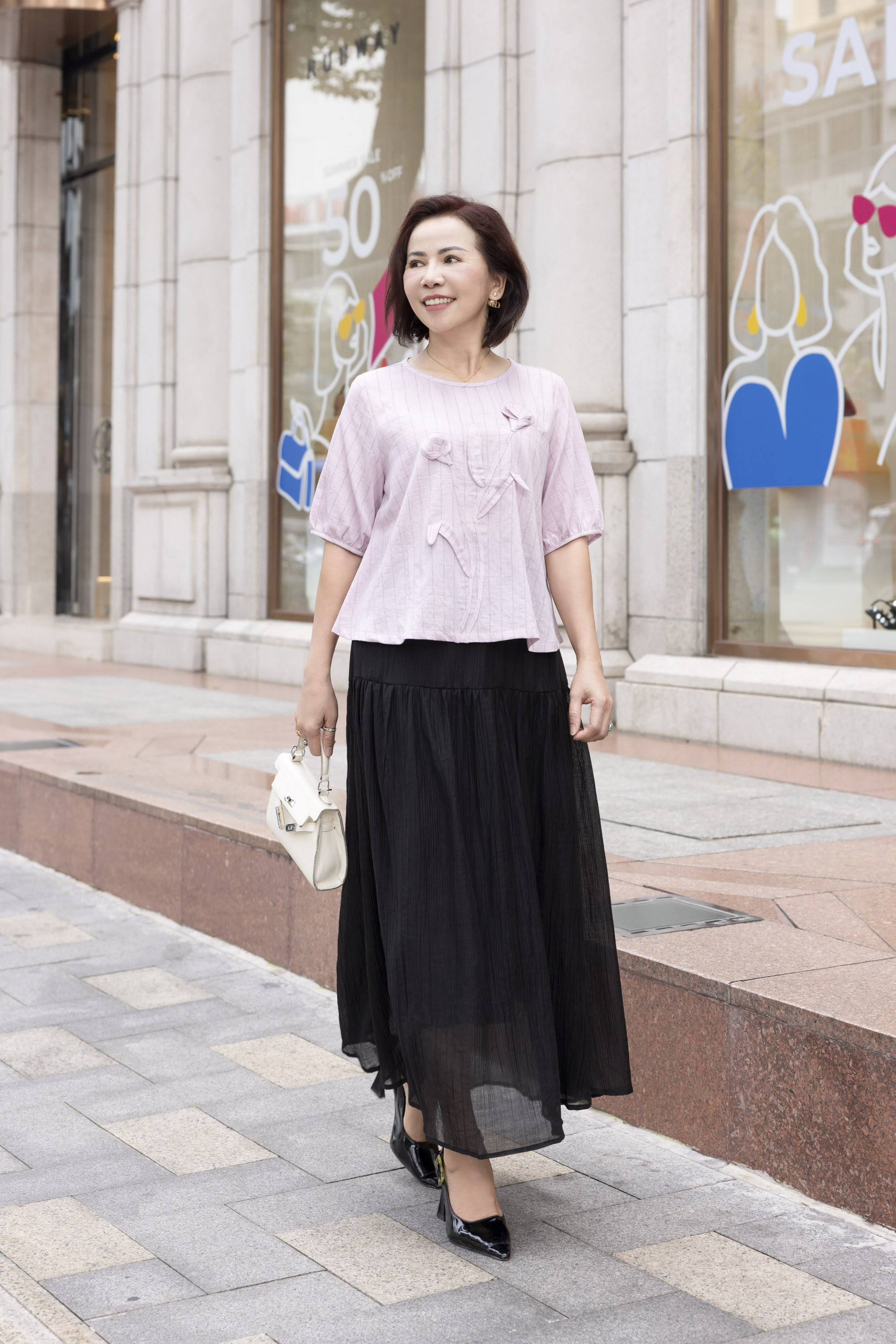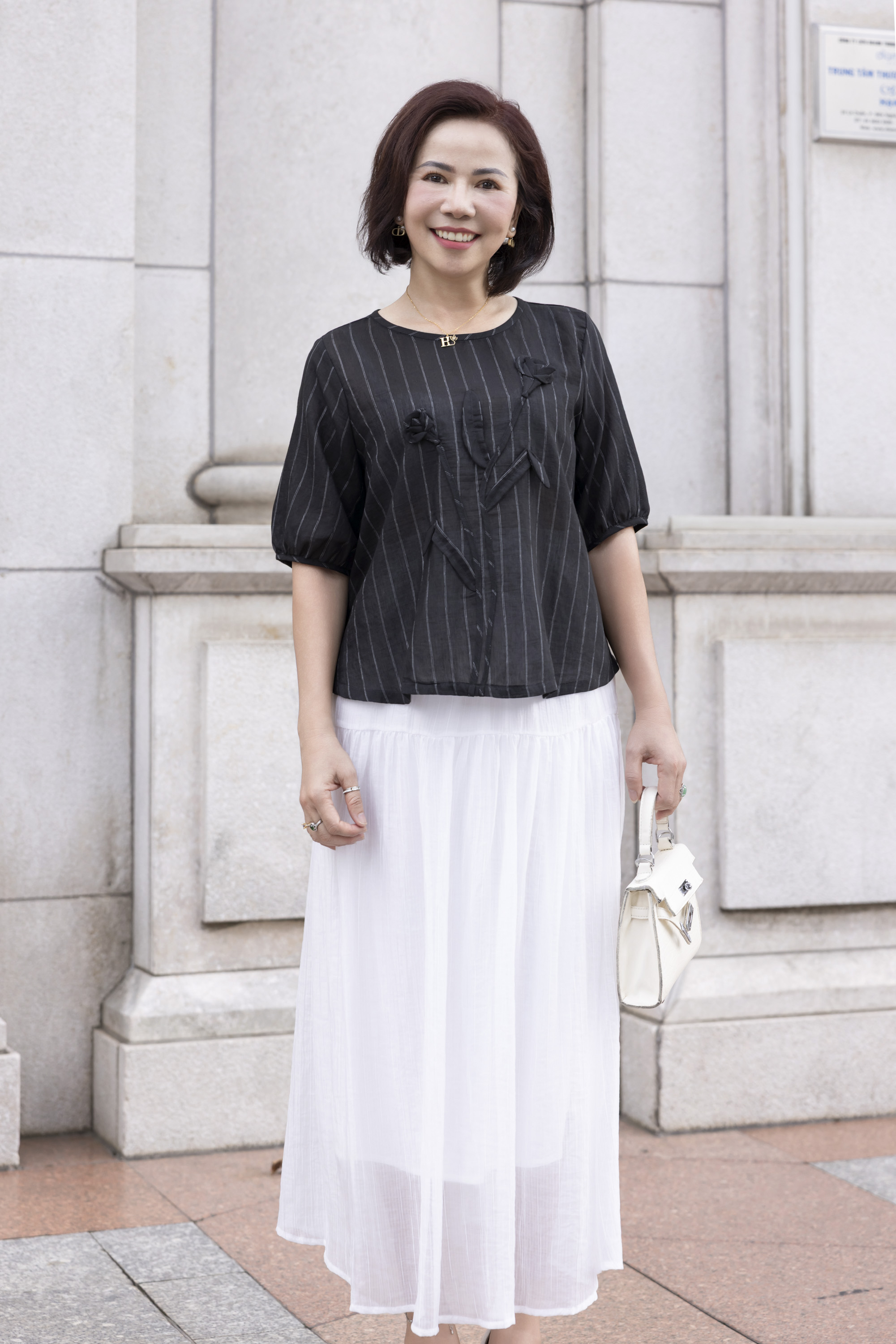 M COLLECTION | Áo Kiểu Nữ Trung Niên Tặng Mẹ Phom Suông Cổ Tròn Chất Vải Linen Thêu Họa Tiết A10943LW01
