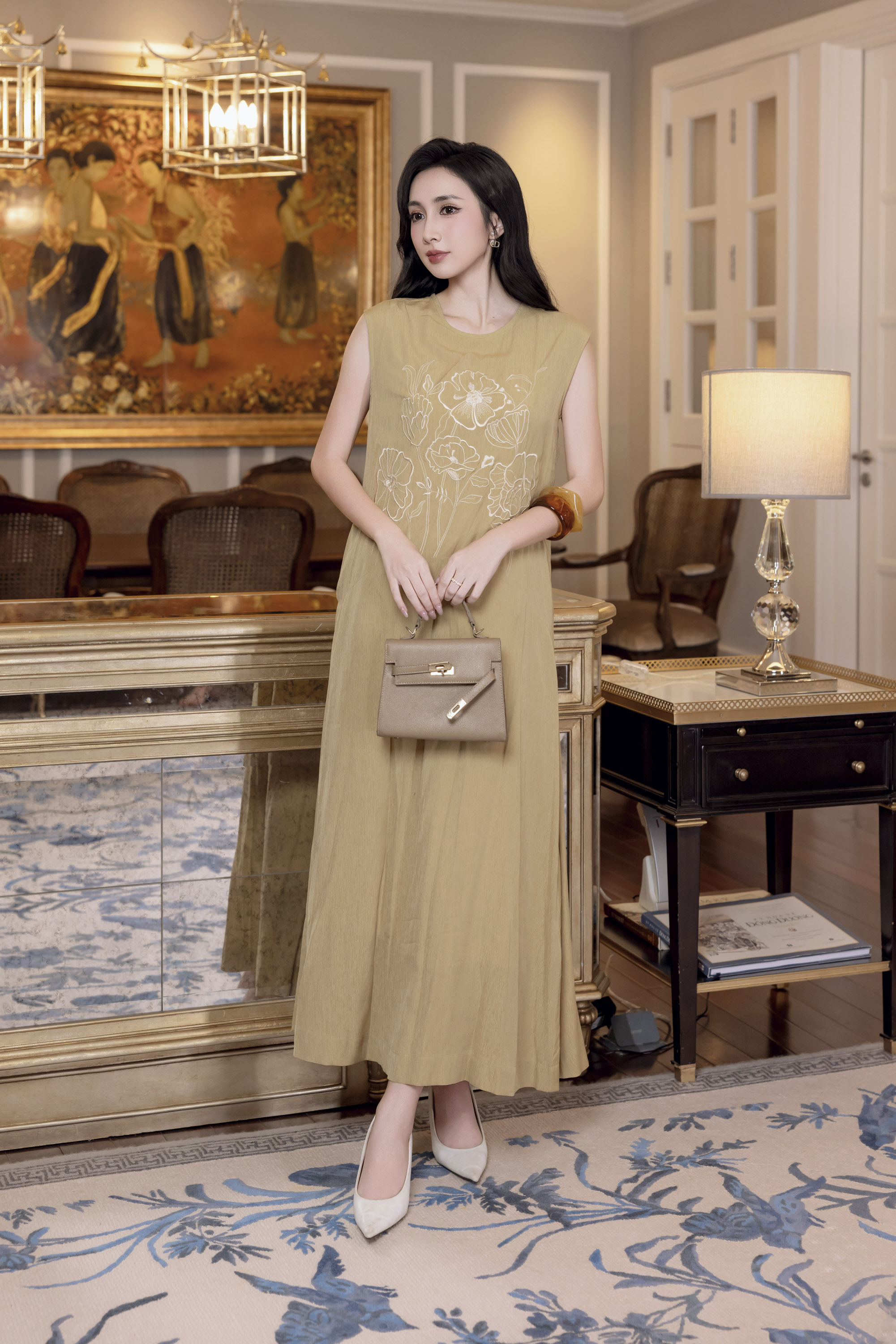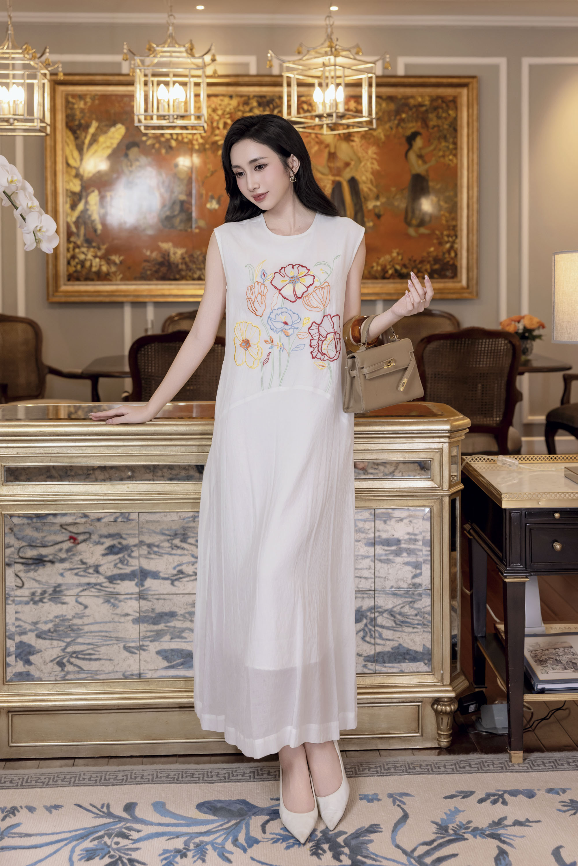 SWANLAKE | Váy Đầm Nữ Suông Maxi Xòe Sát Nách Cotton Cát Lót Thêu Hoa Tiệc Công Sở Thanh Lịch D12935LW01