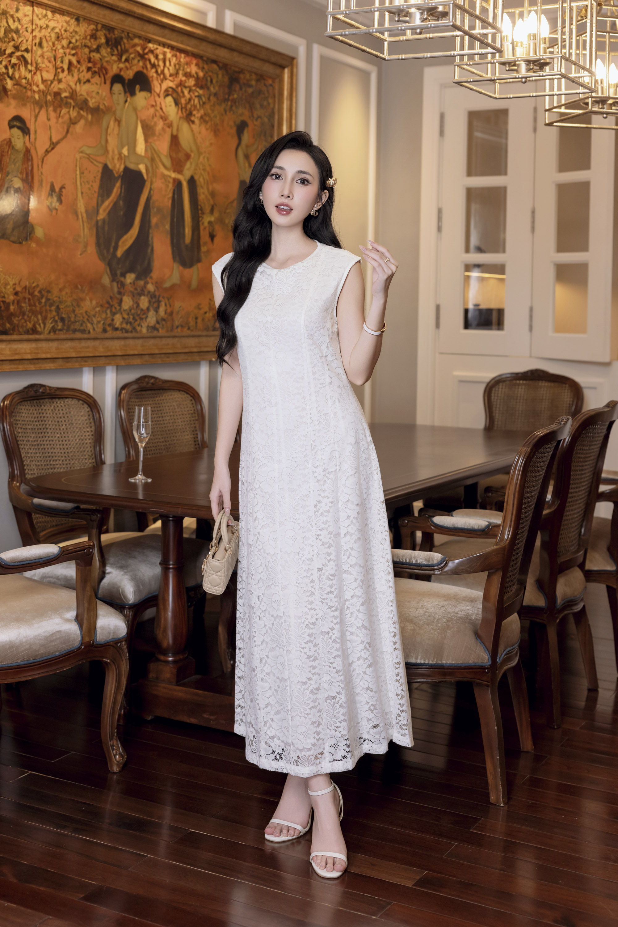 SWANLAKE | Váy Đầm Ren Nữ Suông Maxi Sát Nách Lót Thêu Hoa Dự Tiệc Công Sở Sang Trọng Cổ Tròn D12998LW01