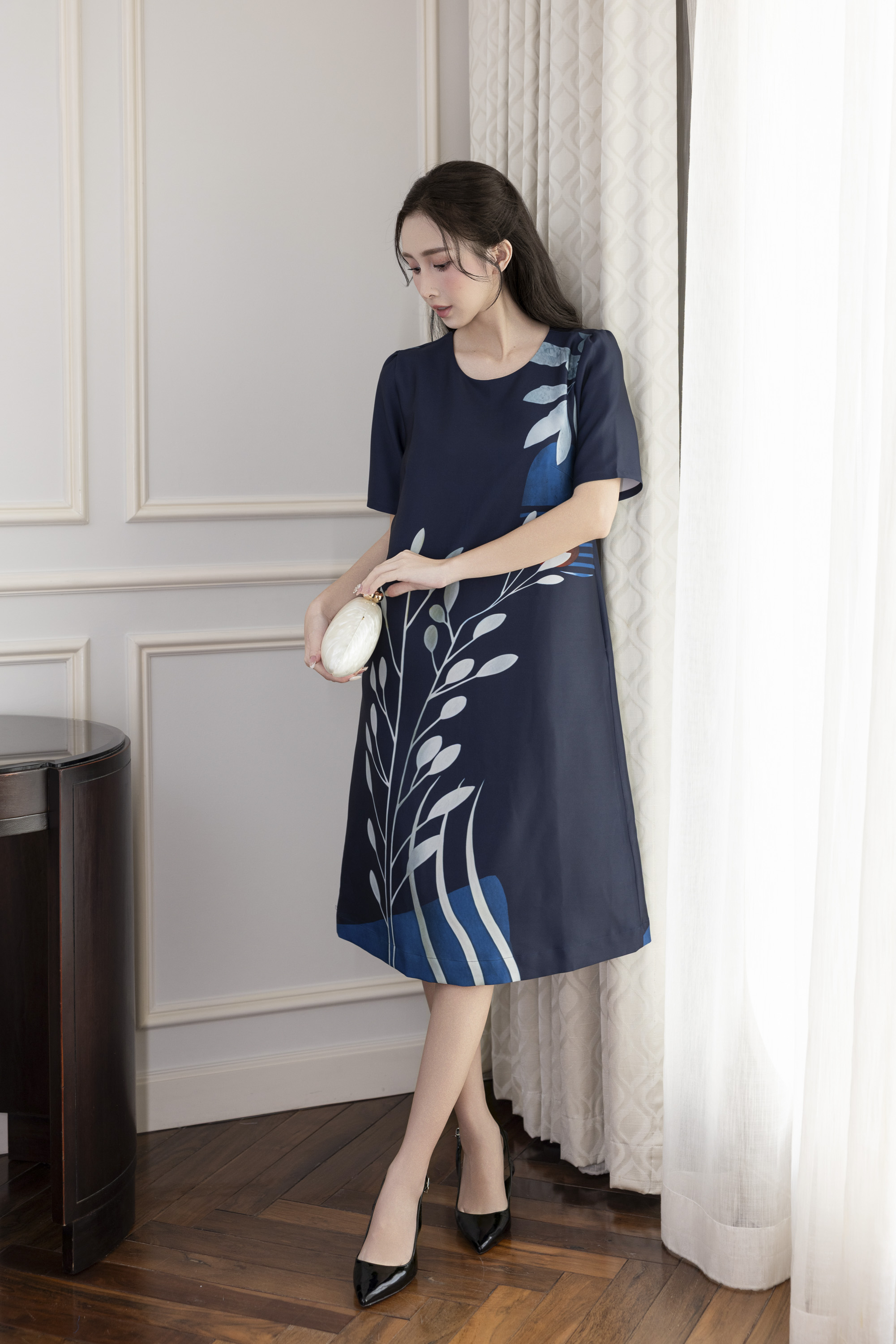 Váy Đầm Nữ Phom A Cổ Tròn Tay Ngắn Lụa Dày In Hoa Sang Trọng Đi Tiệc Công Sở D13067LW01