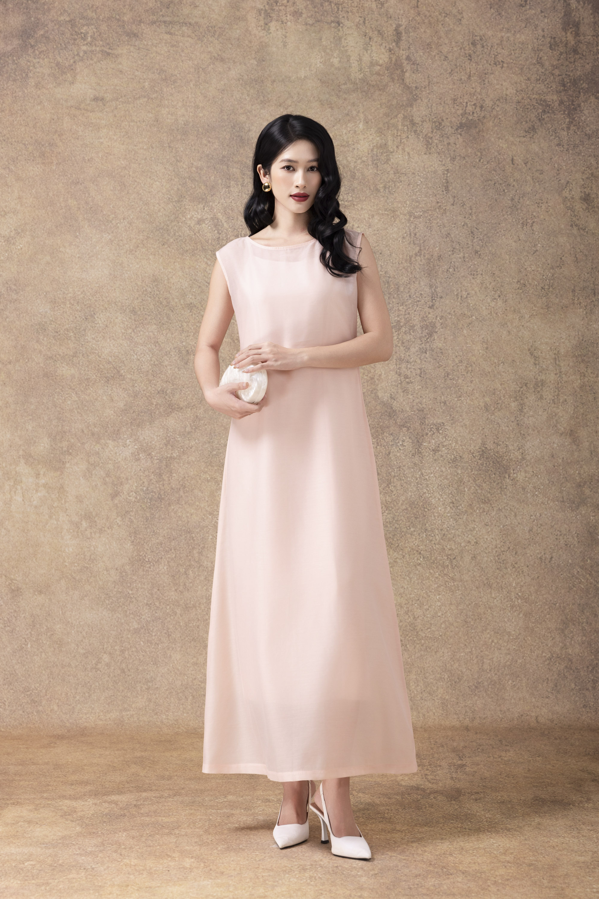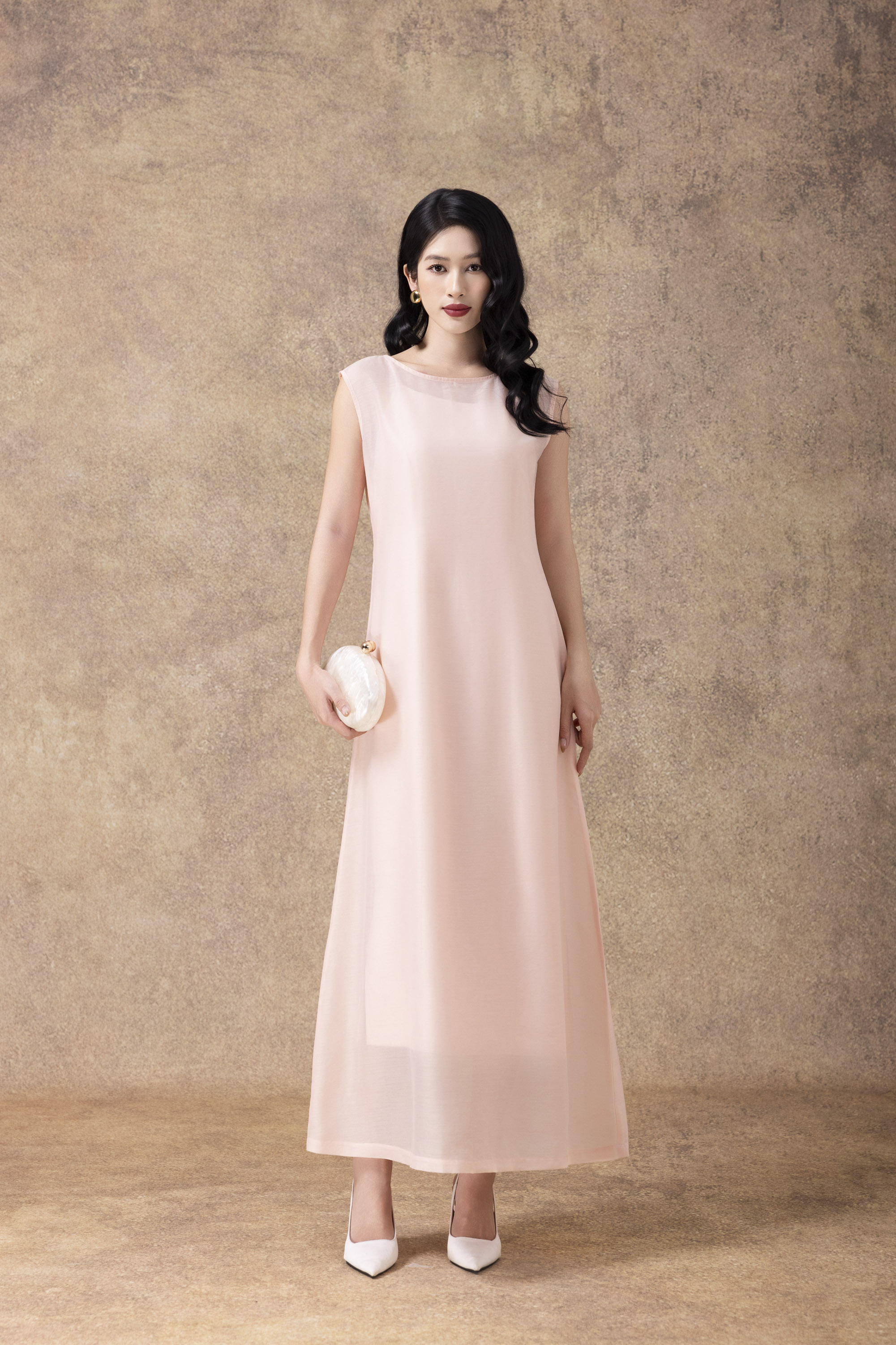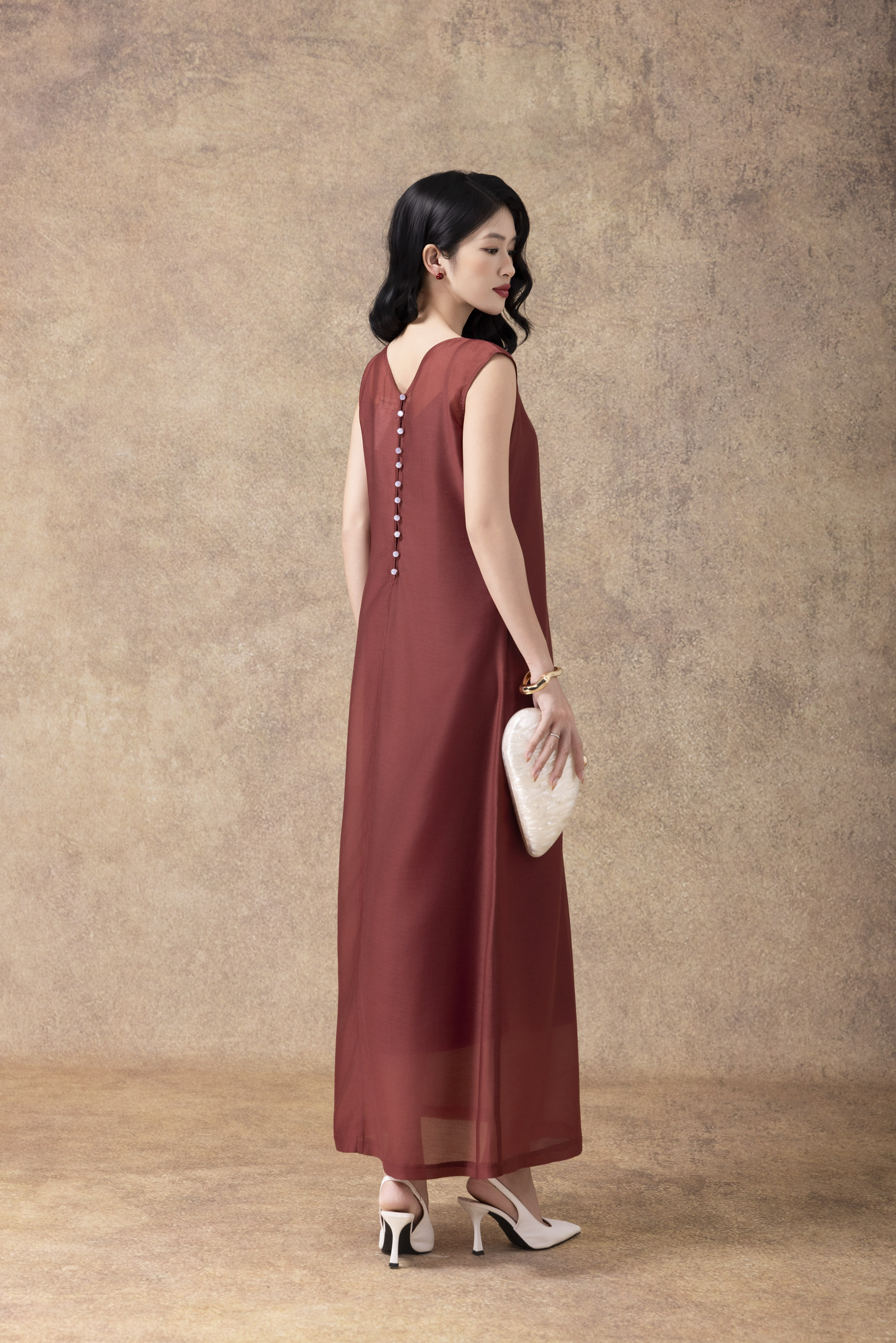 SWANLAKE | Váy Đầm Nữ Maxi Suông Sát Nách Cổ Tròn Vải Tơ Lót Lụa Trơn Cài Nút Sau Đi Tiệc D13152LW01