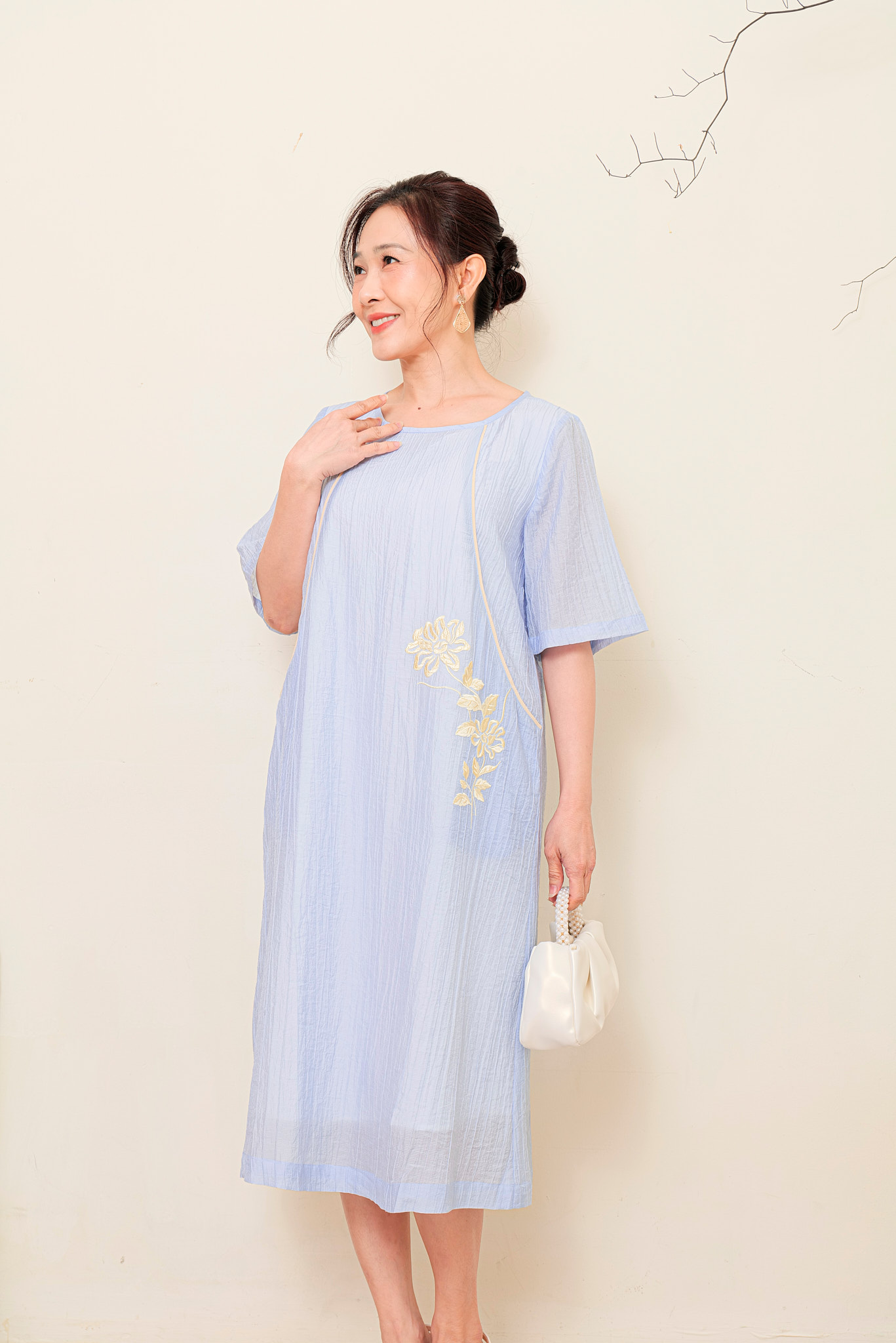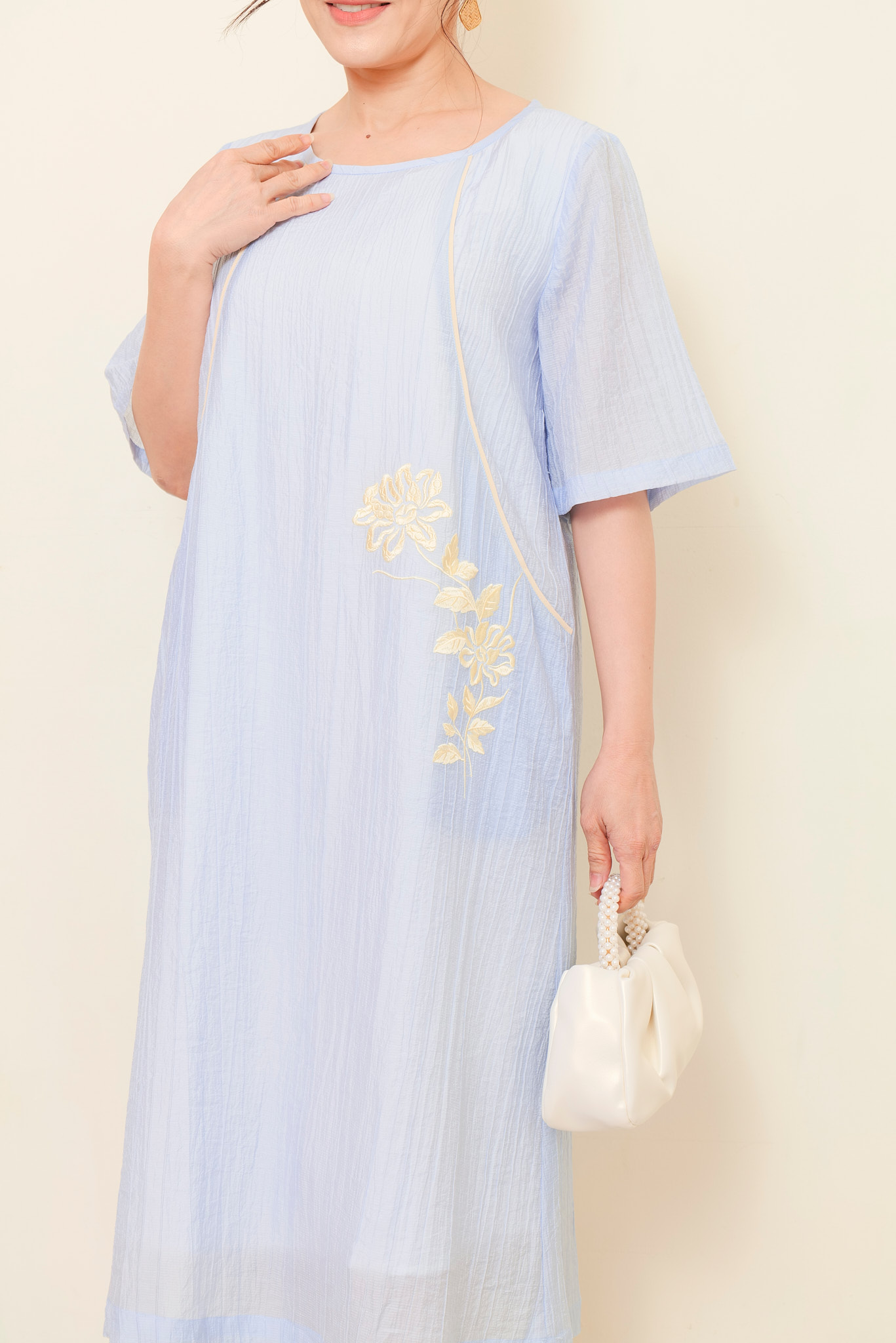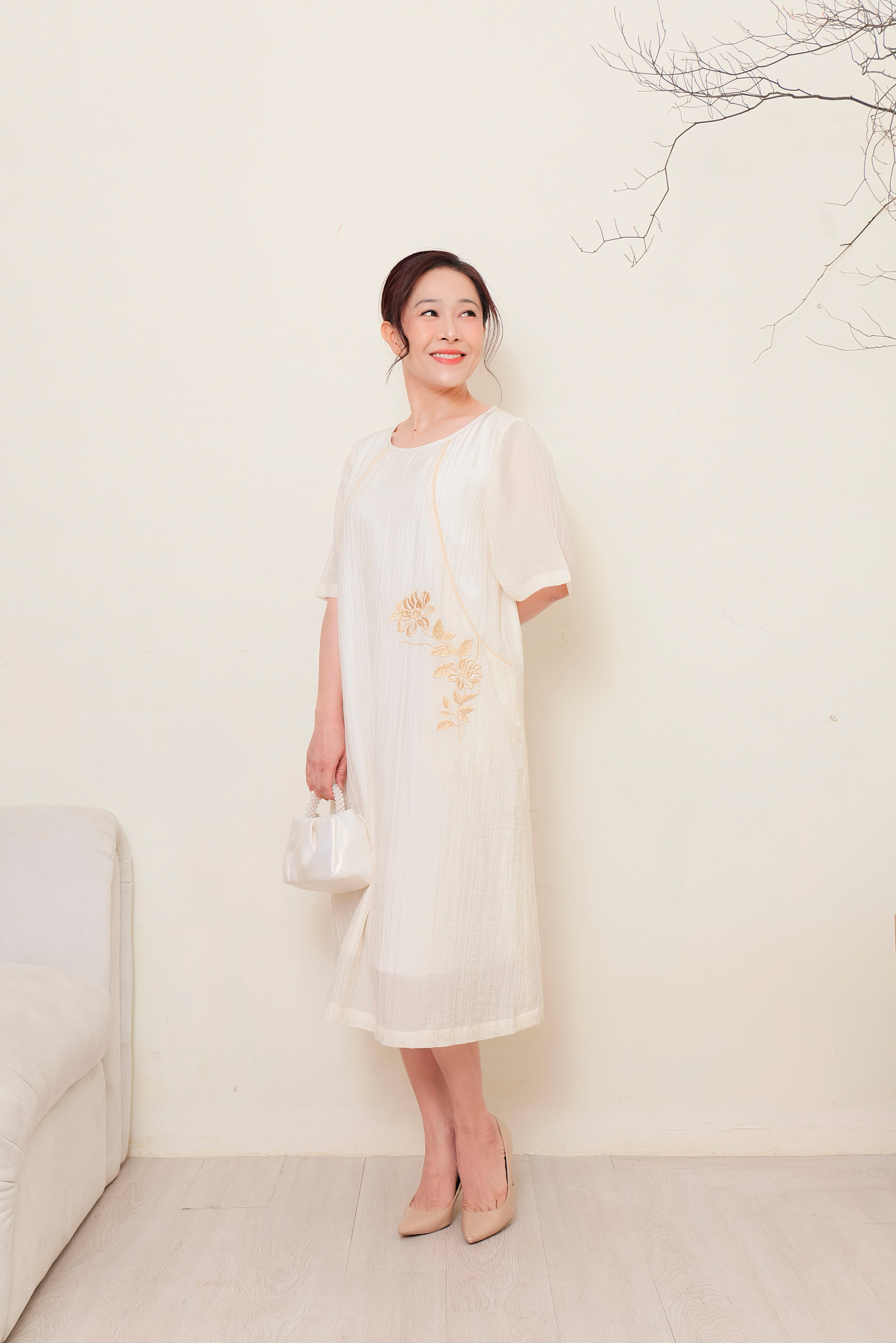 Đầm Chất Liệu Tơ Dập Ly Phom Suông Tay Ngắn Thêu Swanlake - D11705LW01