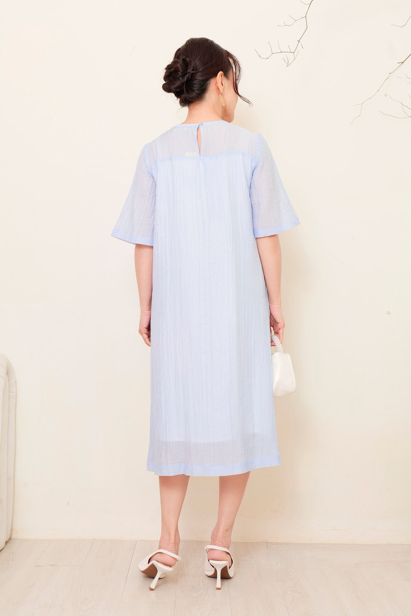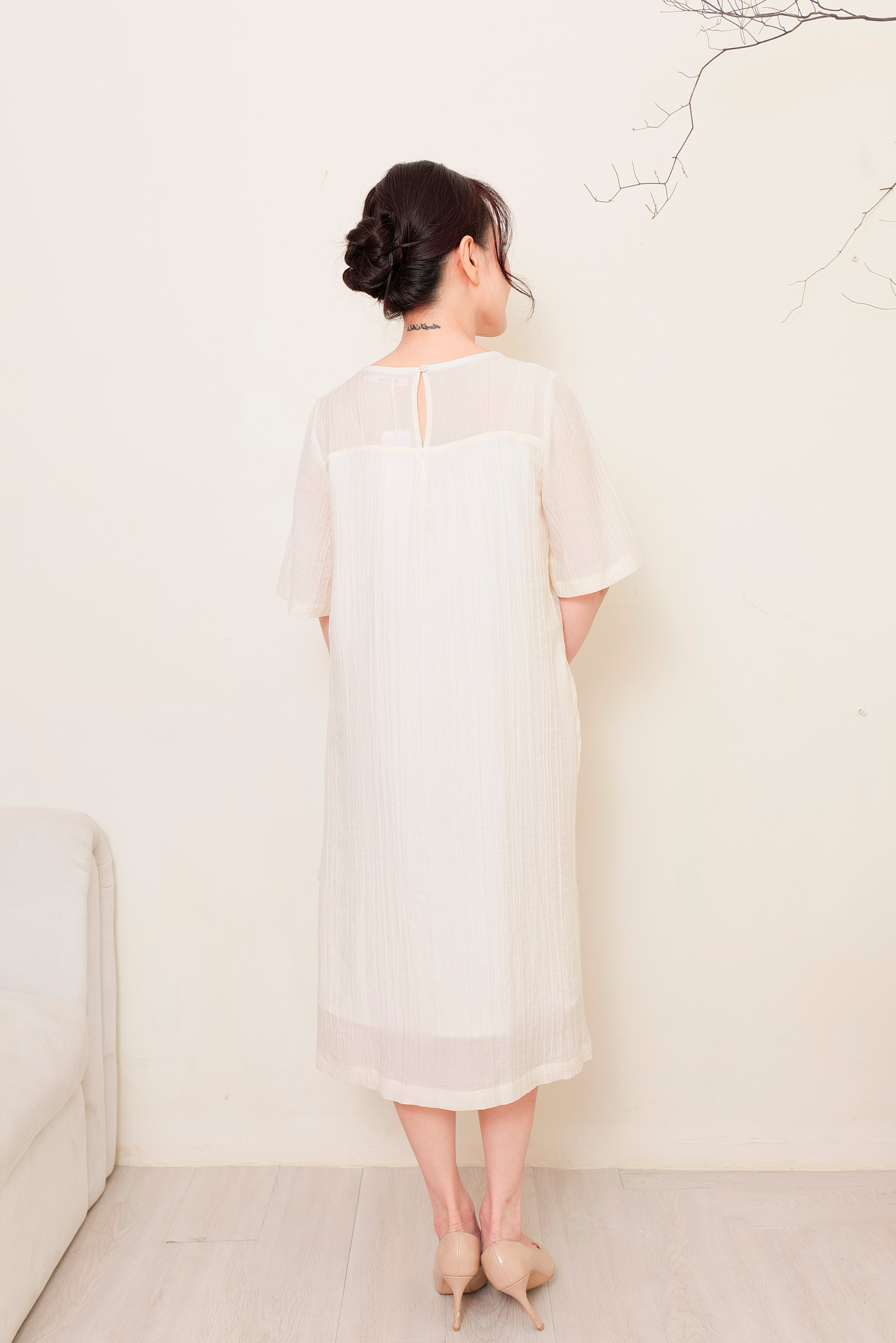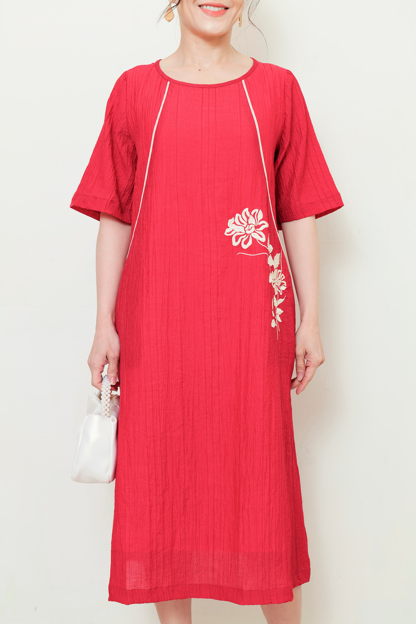 Đầm Chất Liệu Tơ Dập Ly Phom Suông Tay Ngắn Thêu Swanlake - D11705LW01