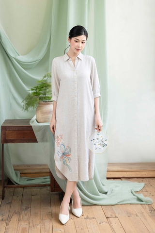 Đầm Sơ Mi Linen Phom Suông Dài Thêu Chân Váy - D12213LW01