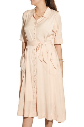 Đầm Sơ Mi Vải Lụa Thắt Eo Swanlake - D11255LW01