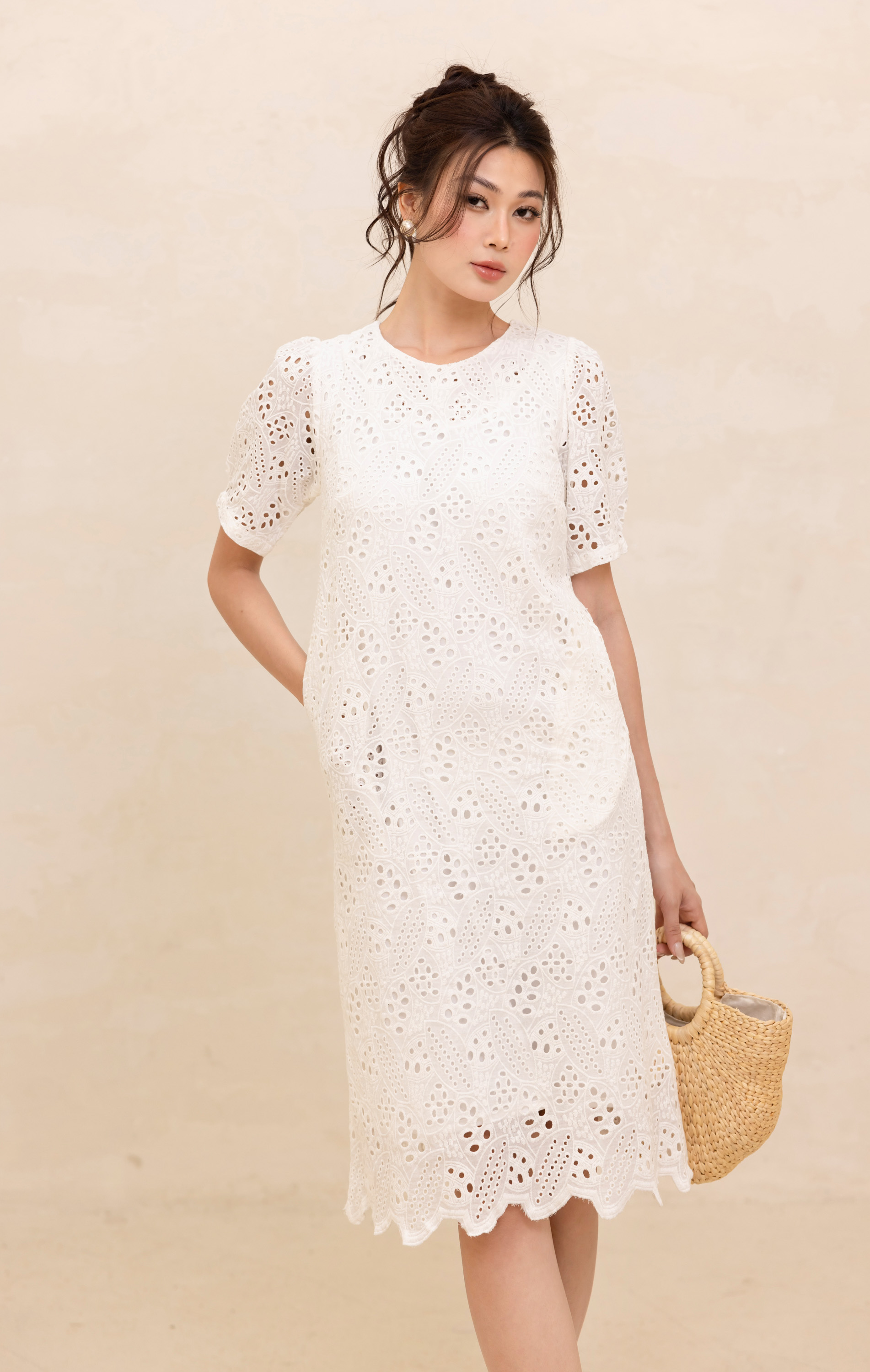 Đầm Suông Phom Ngắn Chất Cotton Thêu Đục Lỗ Swanlake- D12481LW01