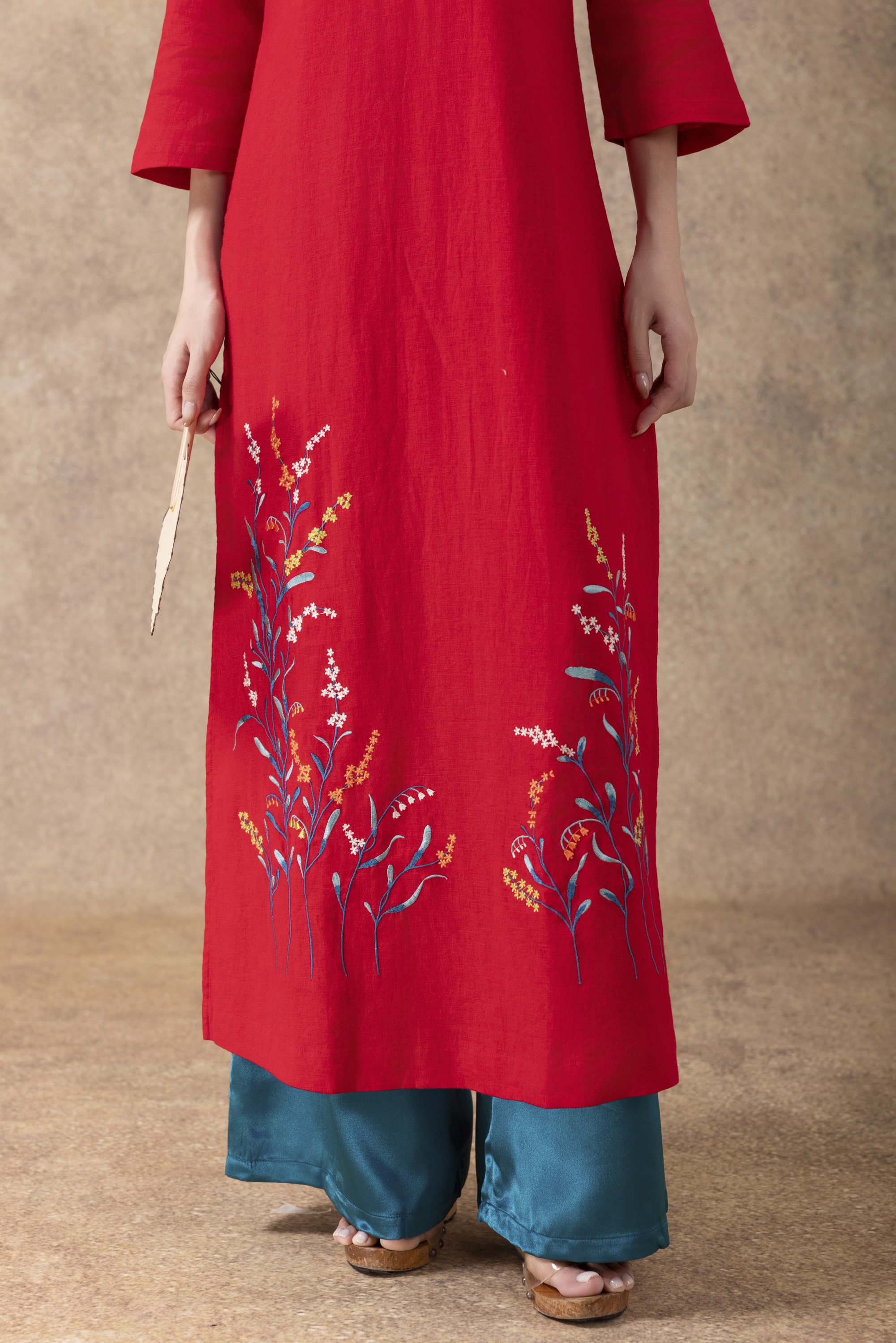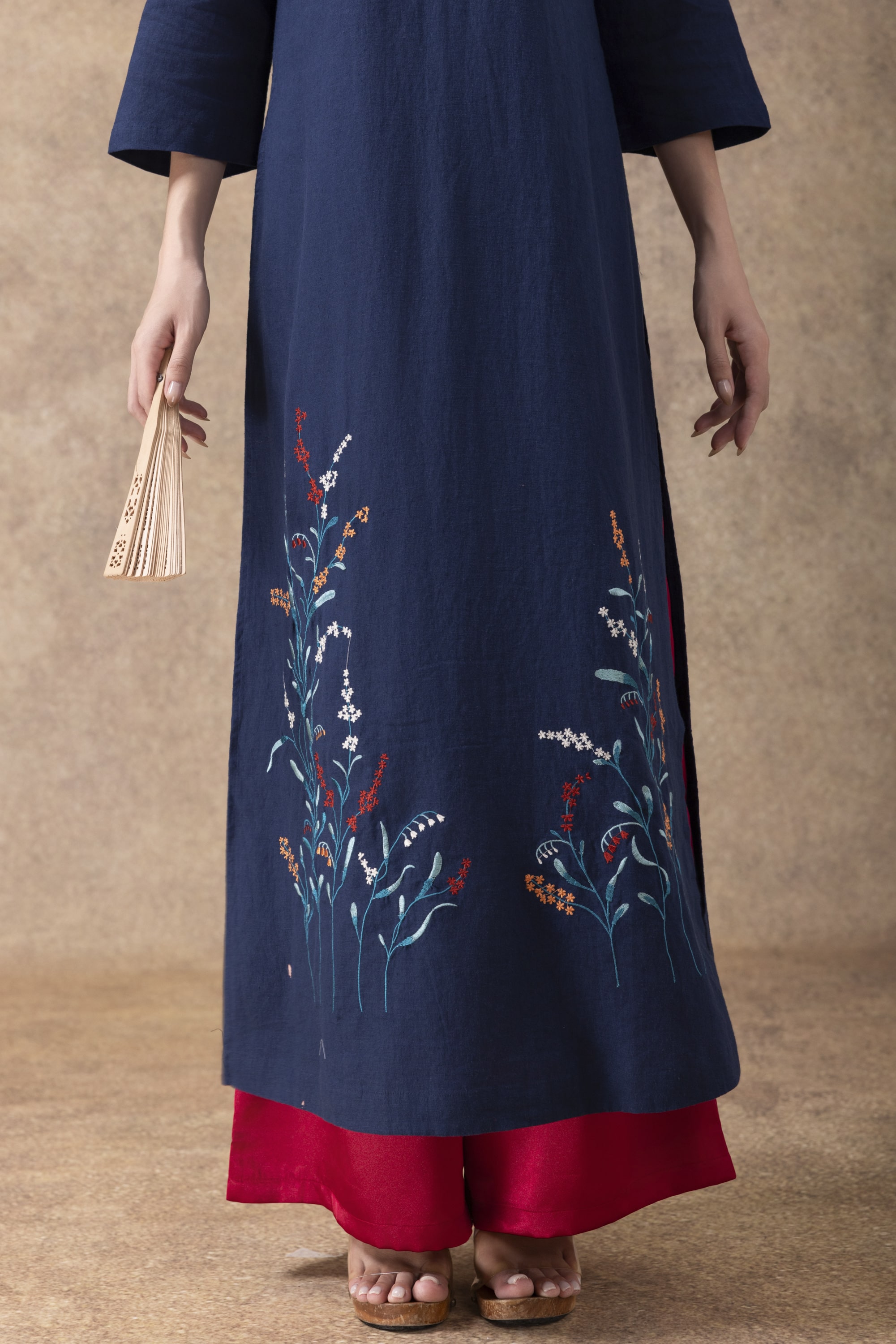 M COLLECTION | Áo Dài Tết Trung Niên Tặng Mẹ Phom Suông Cổ Truyền Thống Vải Linen Thêu Hoa L13090LW01