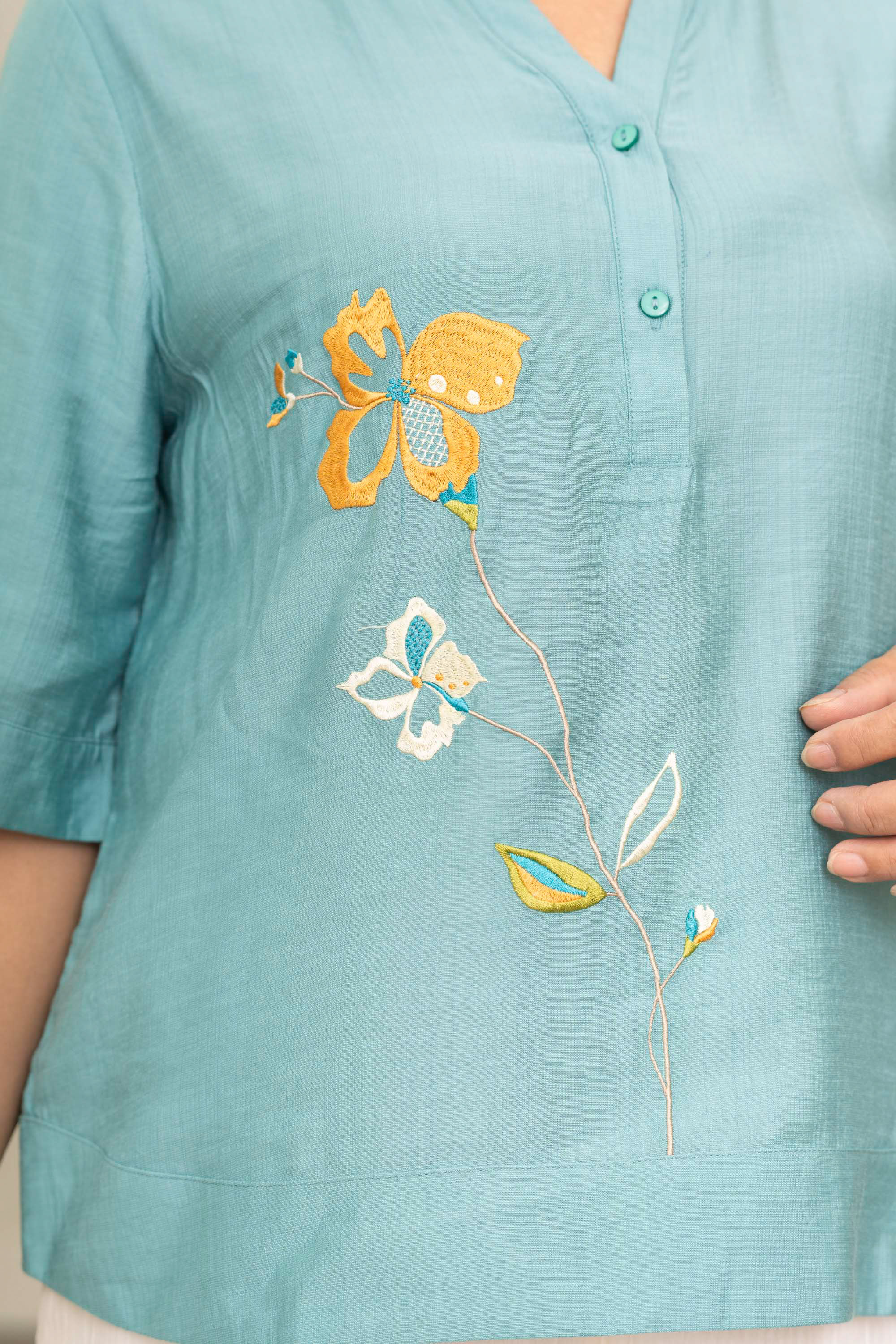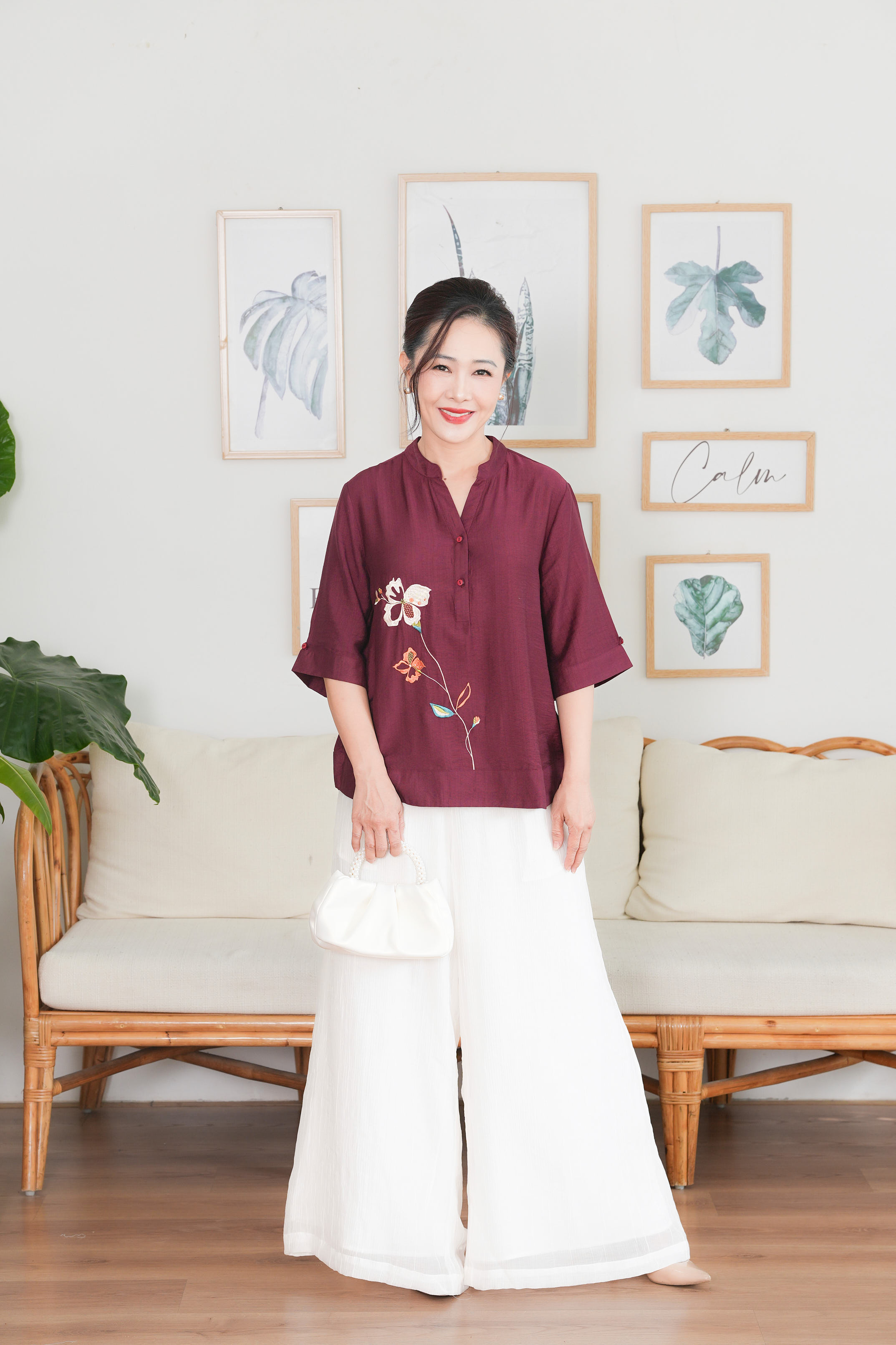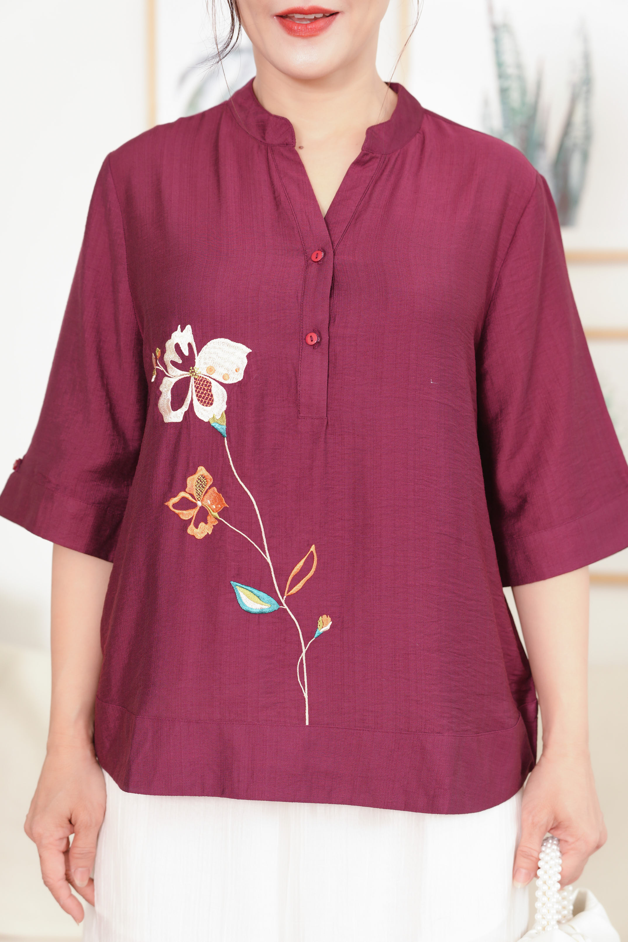 M Collection | Áo Trung Niên Linen Thêu Tay Ngắn Mặc Hàng Ngày - A12472LW01