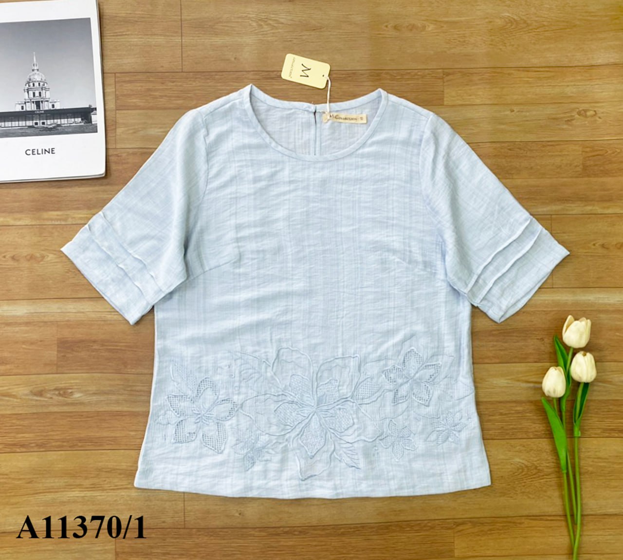 M Collection | Áo Trung Niên Nữ Lụa Hàn Phom Vuông Cắt Hoa 3D A11370LW01