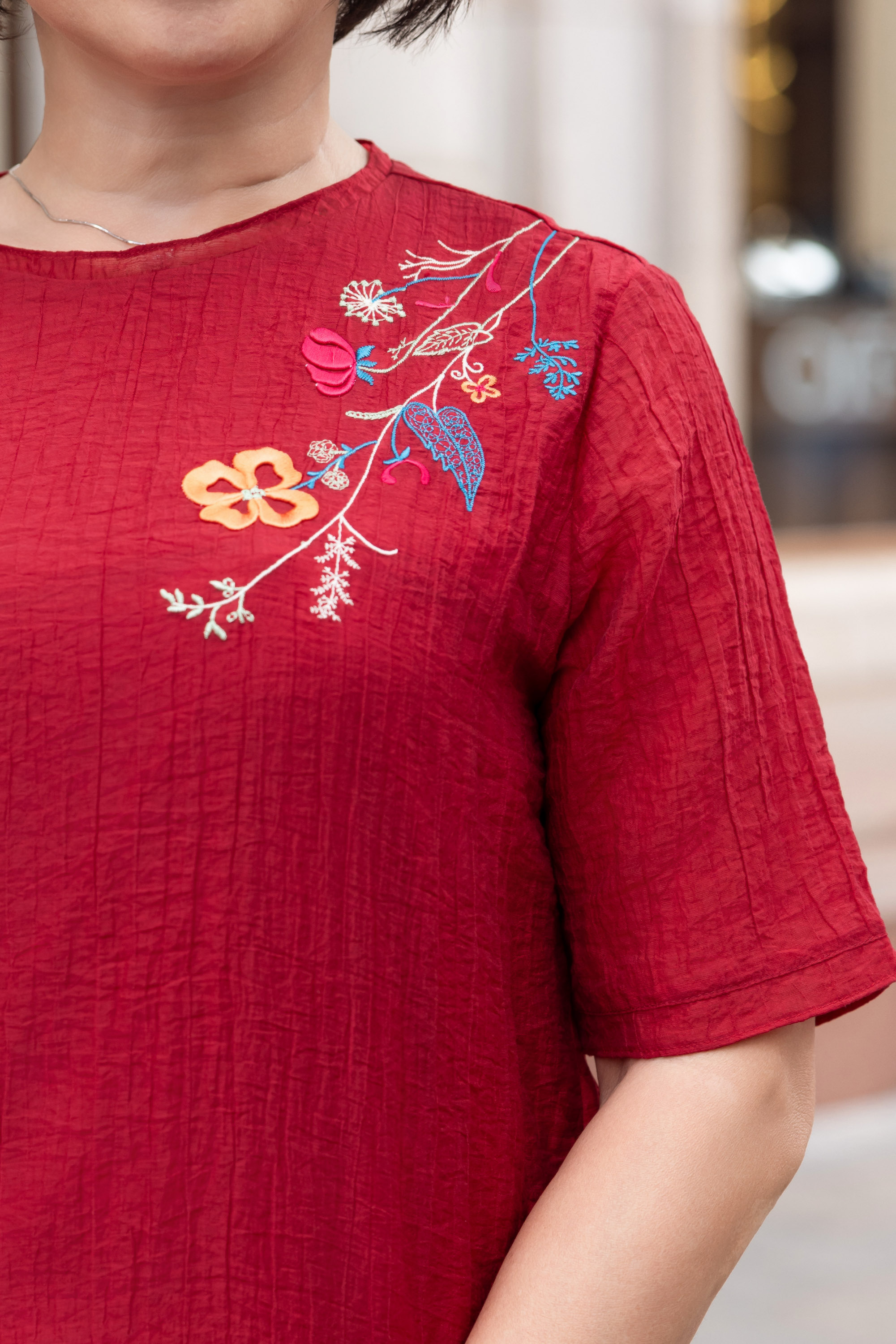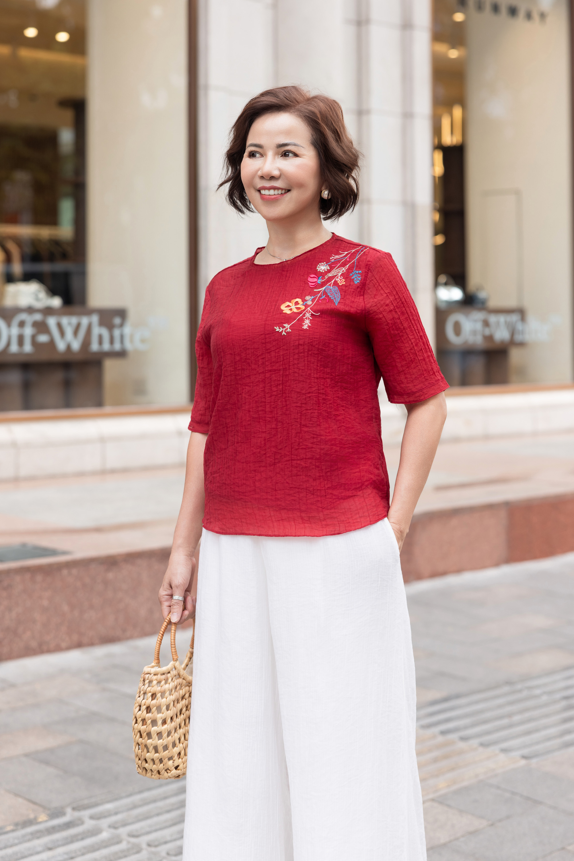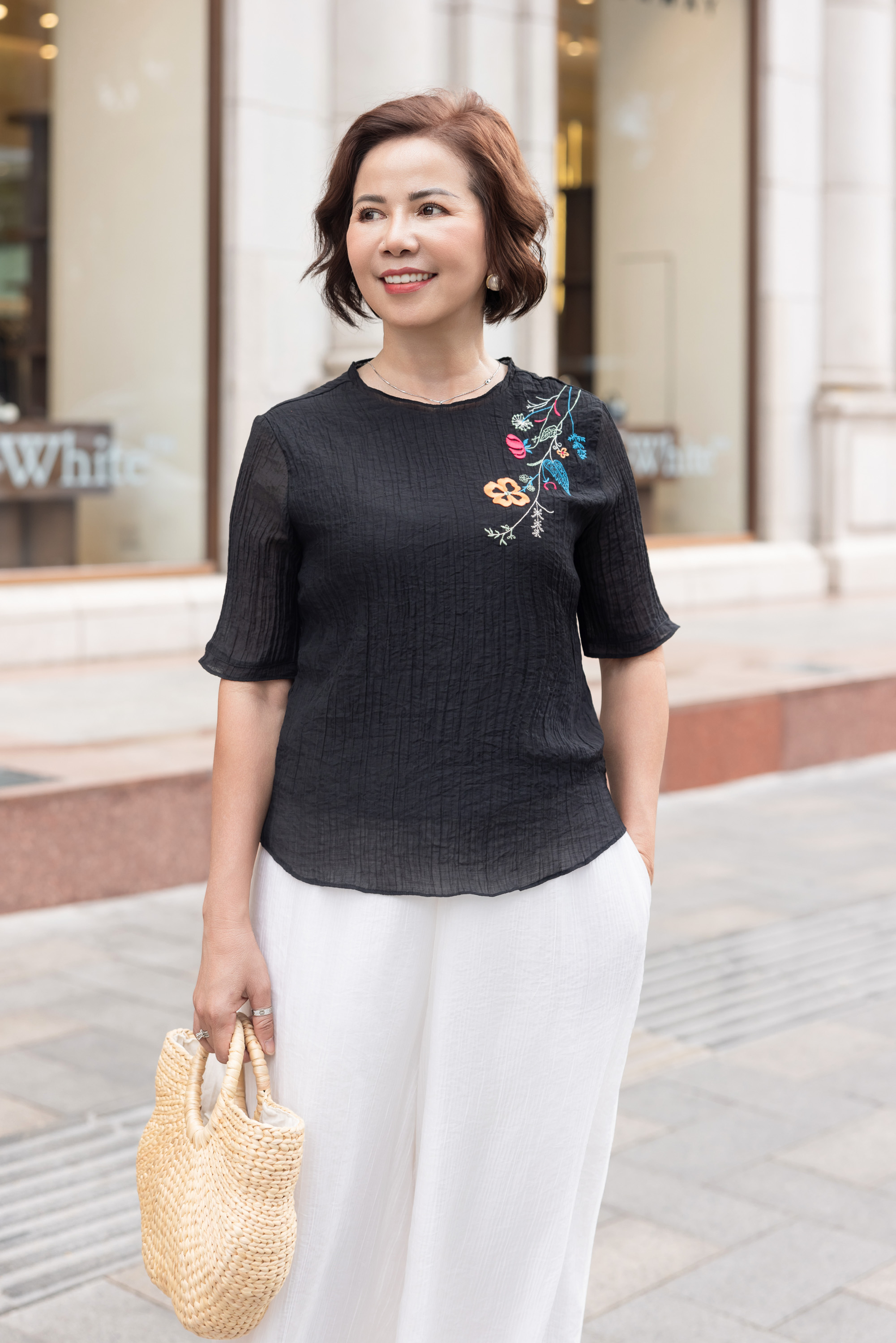 M Collection | Áo Trung Niên Nữ Tặng Mẹ, Tặng Bà Tơ Thêu Sang Trọng Tay Lỡ A12343LW01