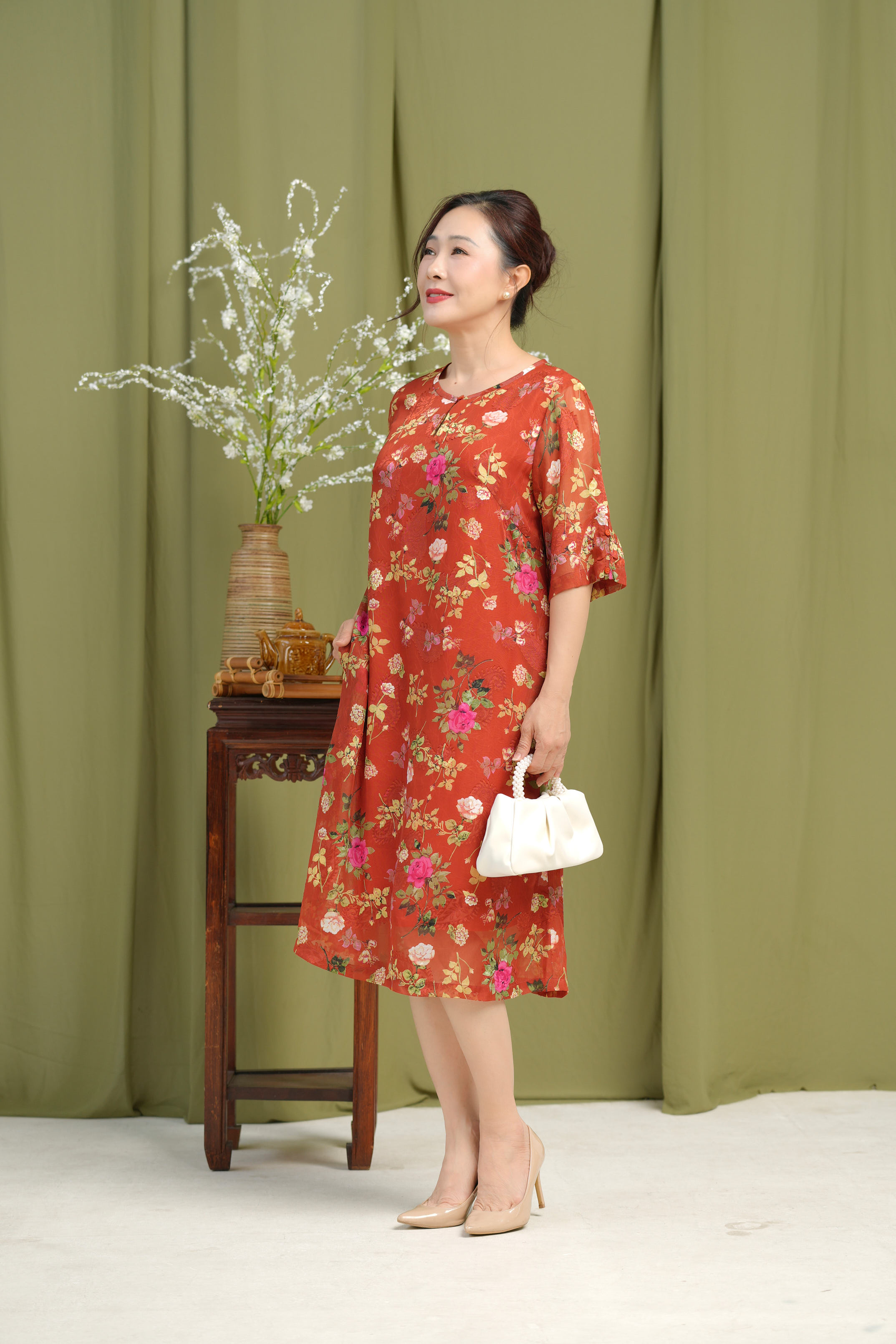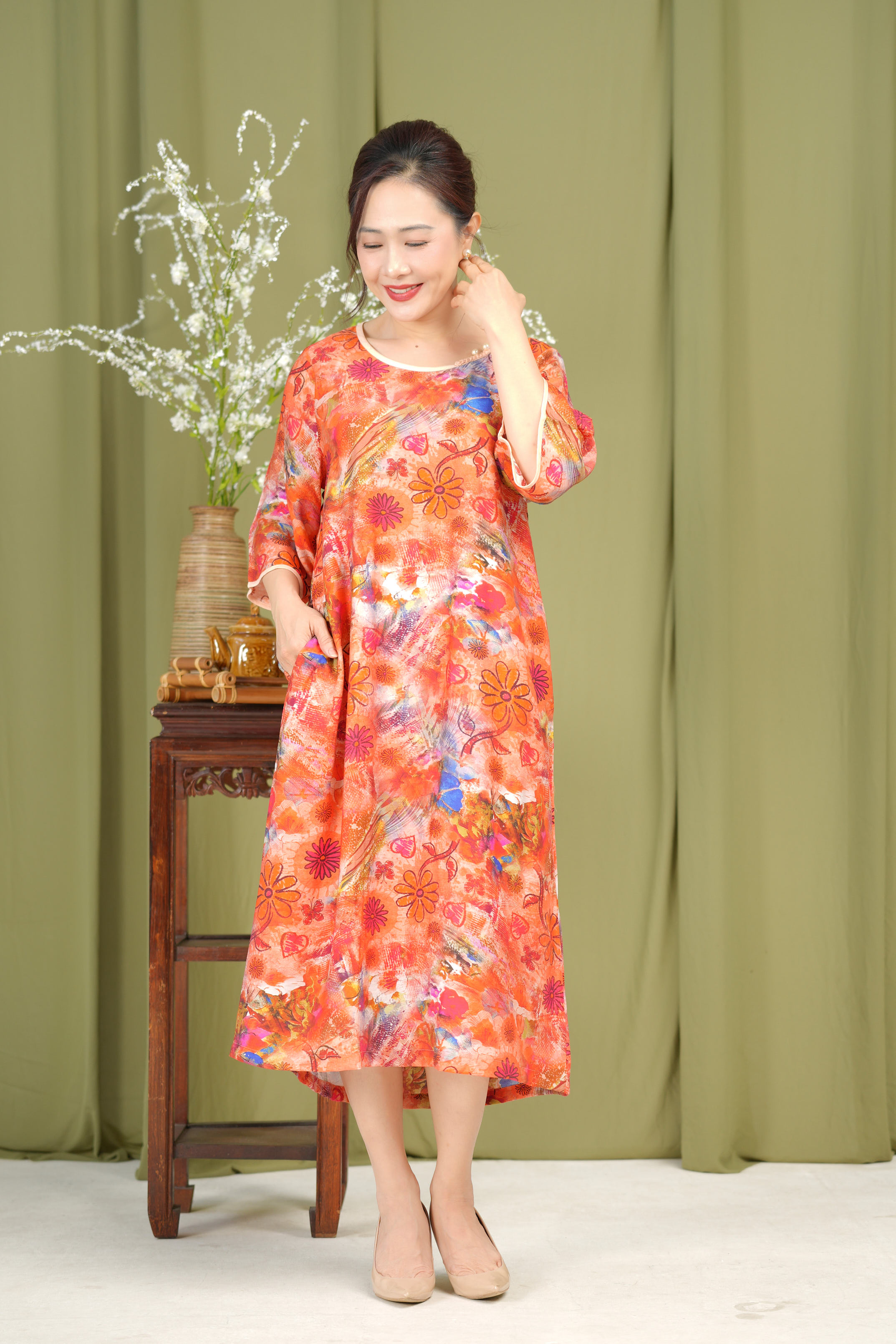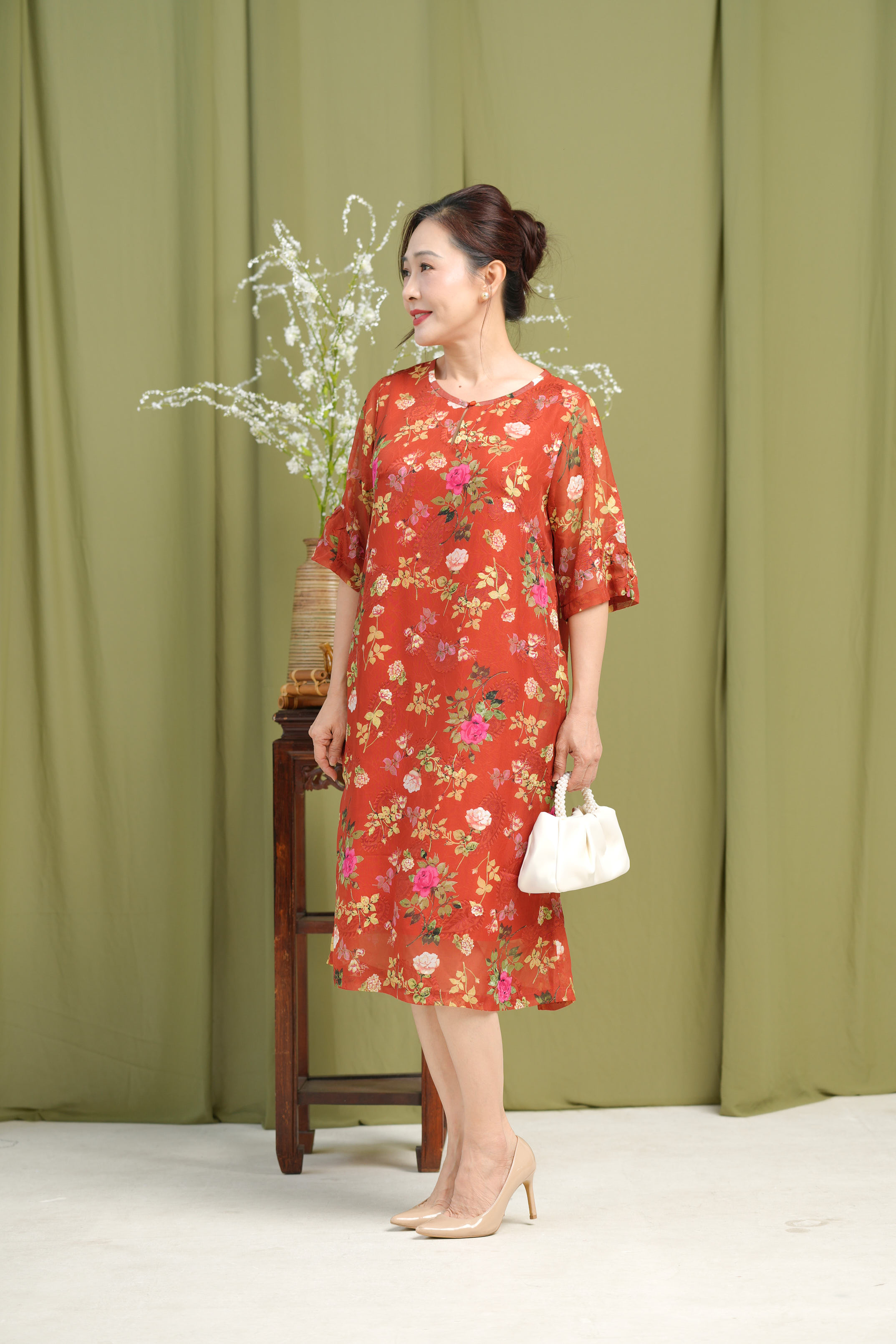 M COLLECTION | Đầm Chiffon Chân Bông Trung Niên Tặng Mẹ Sang Trọng D12405LW01