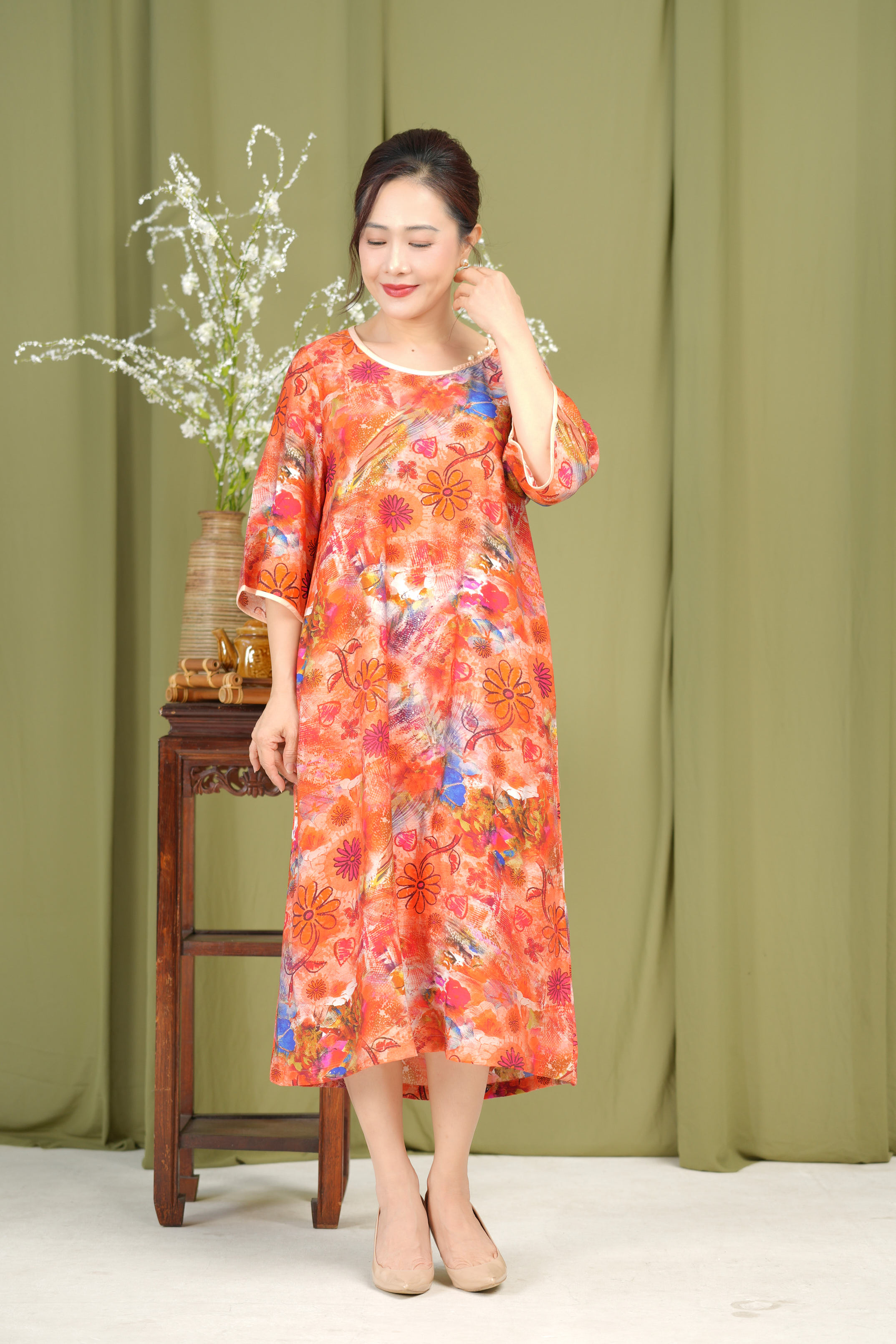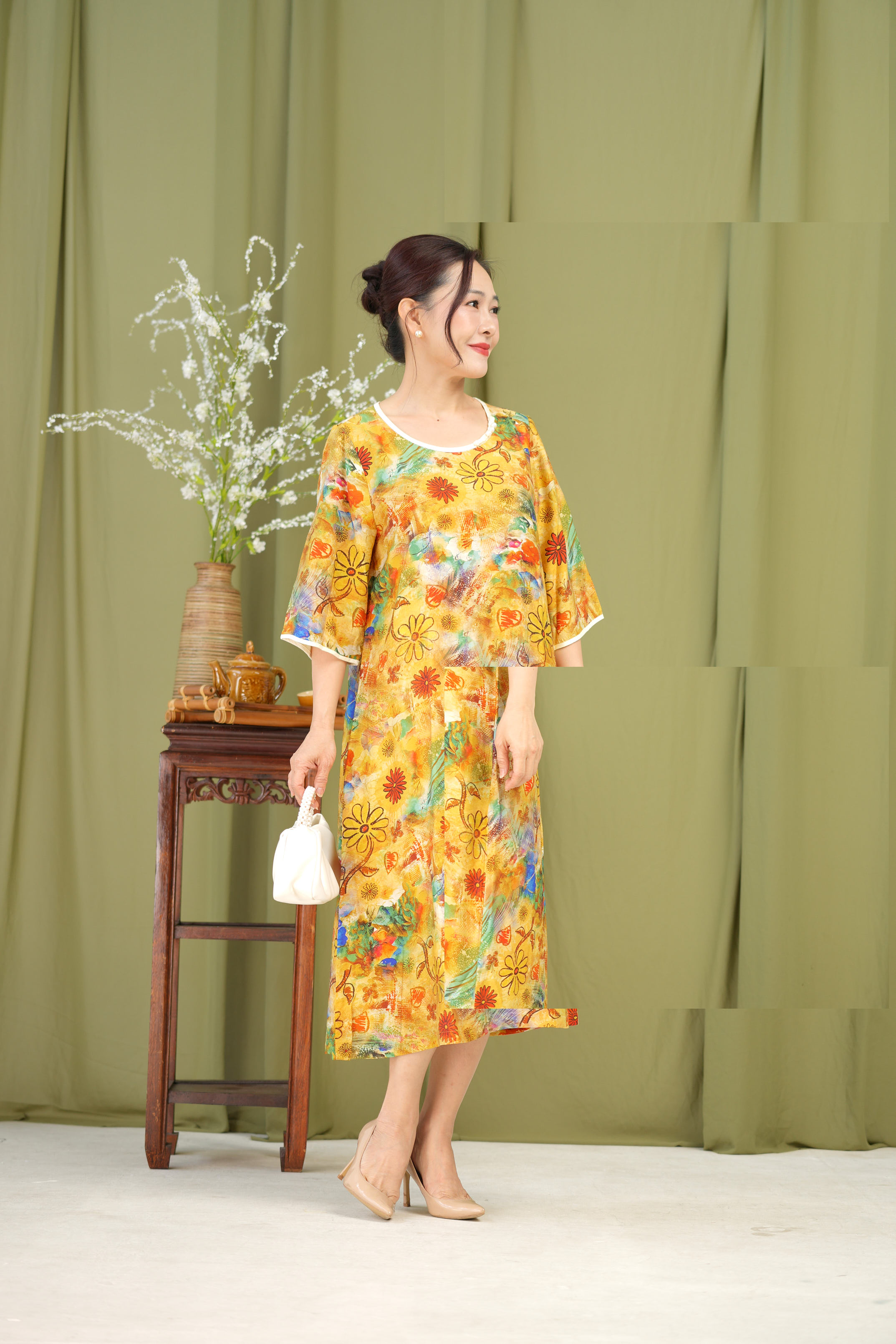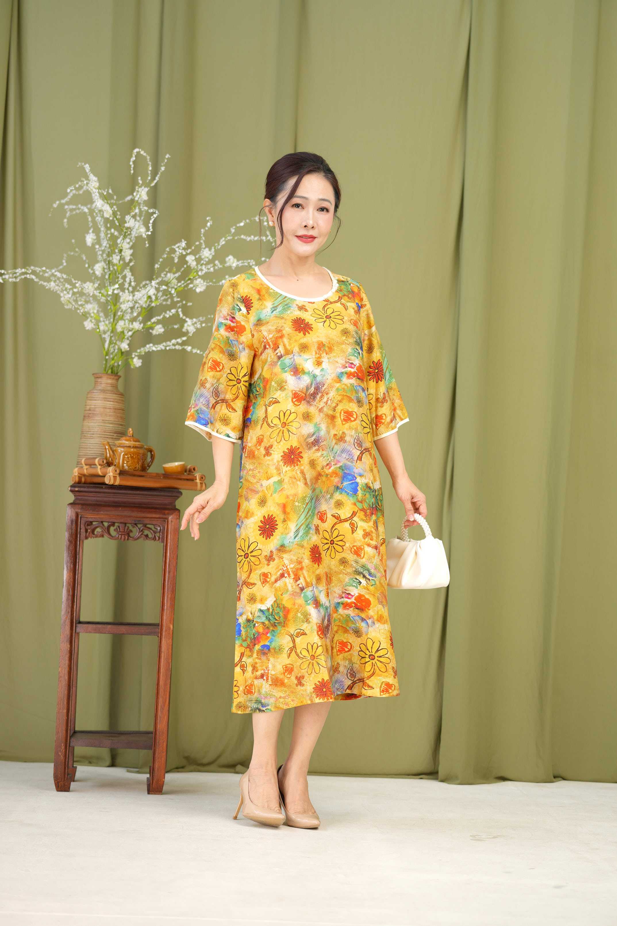 M COLLECTION | Đầm Chiffon Chân Bông Trung Niên Tặng Mẹ Sang Trọng D12405LW01
