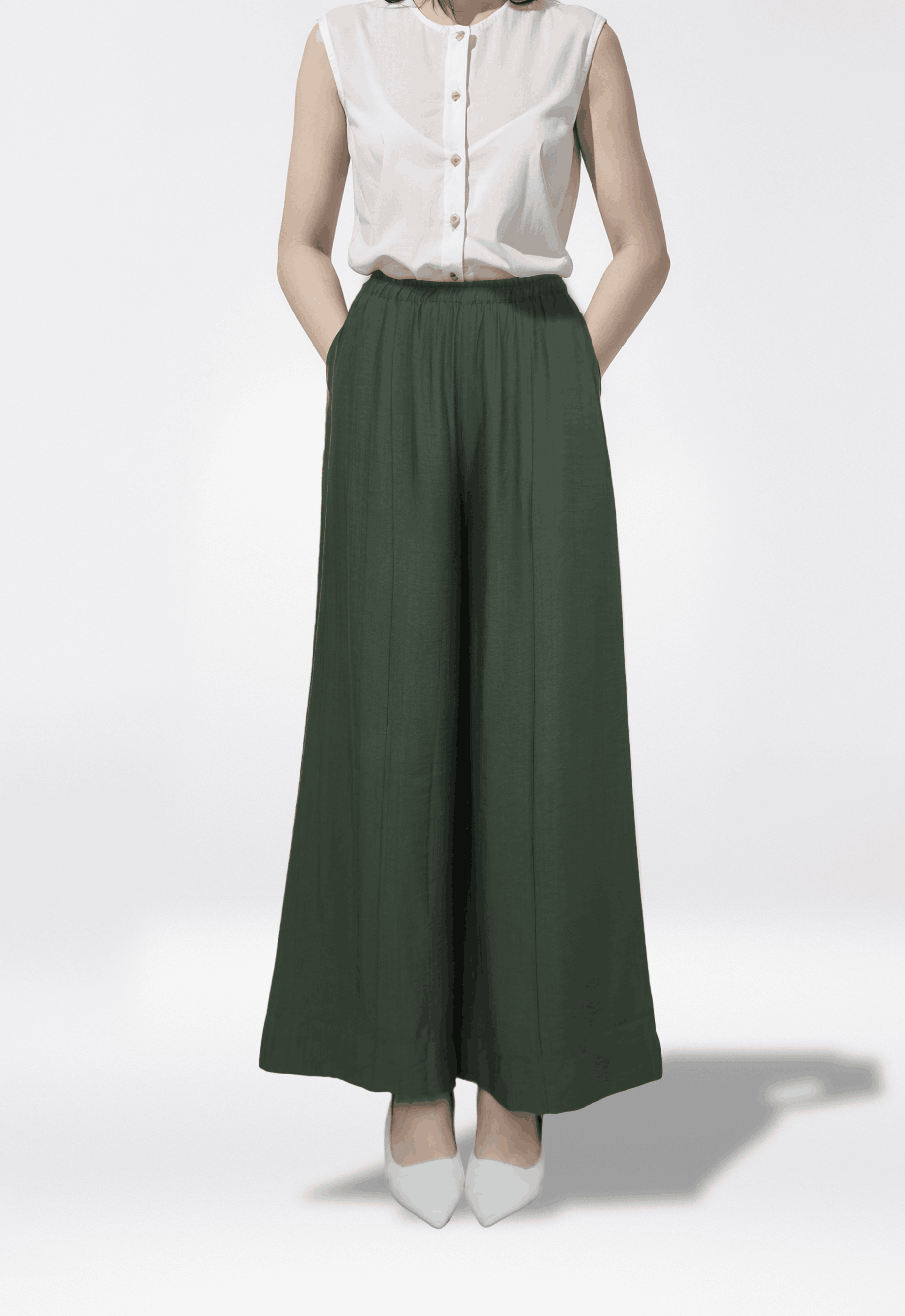 Quần Lụa hàn Ống Rộng Ly Gân Lưng Thun Swanlake - Q11402LW13